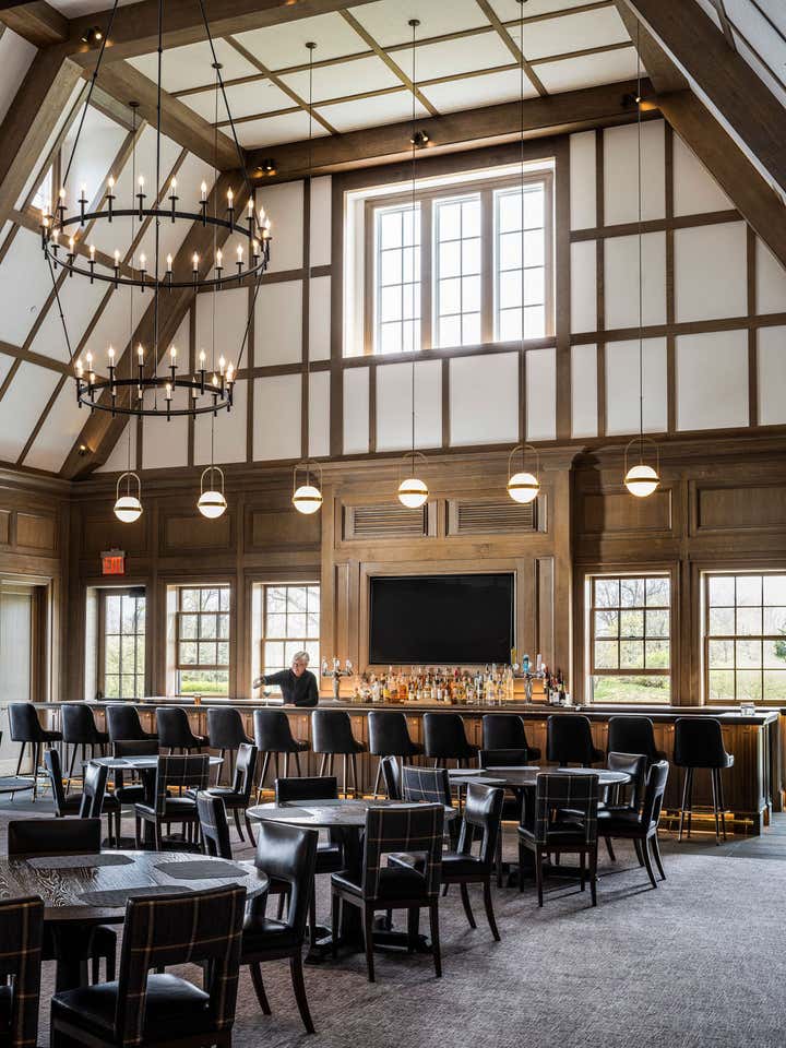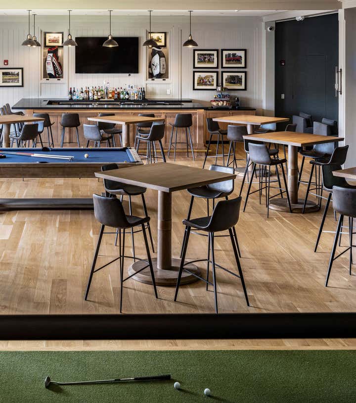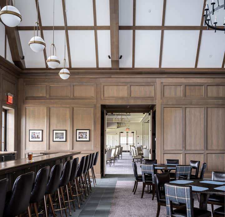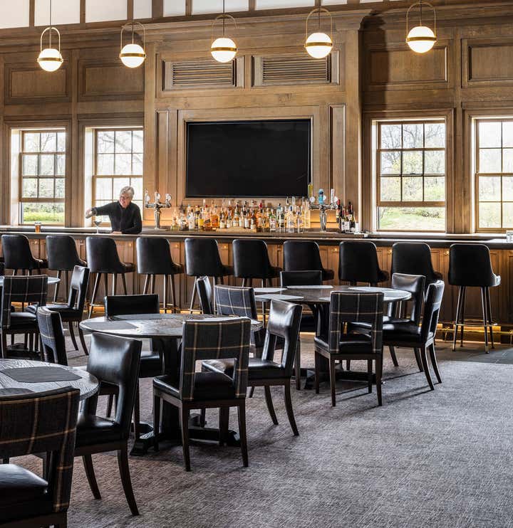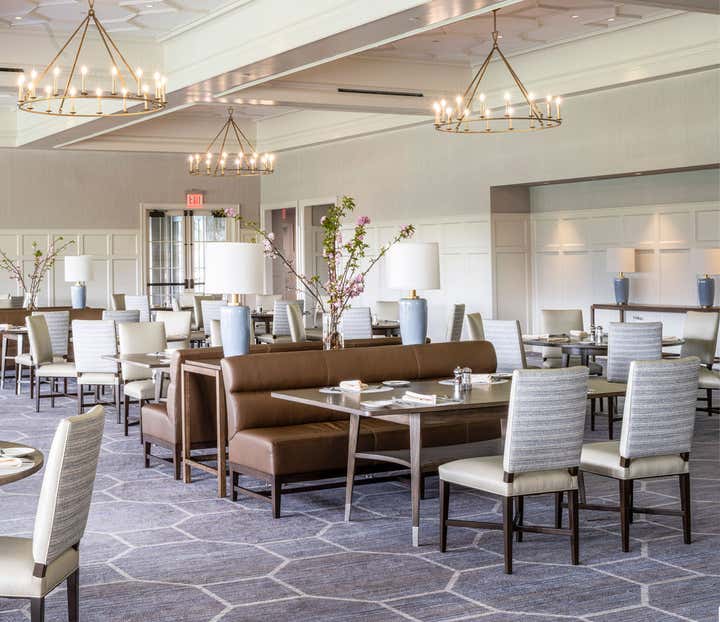 The clubhouse of this golf and country club in Scarsdale, NY, was completely renovated, and a new pro shop building constructed. The interior design remit was to refresh and modernize the rooms, whilst maintaining the integrity of the historic Tudor style building. The result is an updated aesthetic that blends the traditional and contemporary. A fresh color palette creates a clean yet warm and inviting environment.