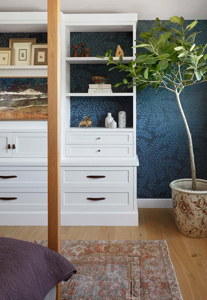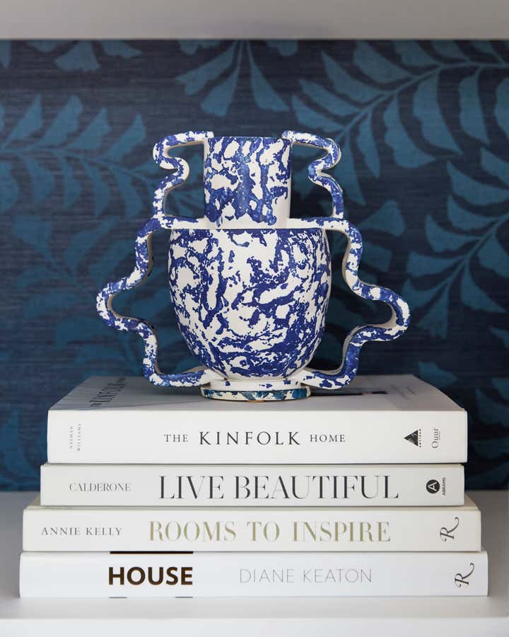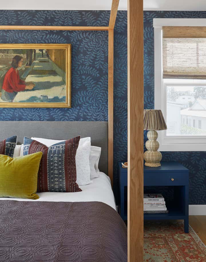 Tone on tone blues reflect the ocean just a few blocks away, and modern and vintage pieces live harmoniously in a space that feels modern, unique and warm with history.