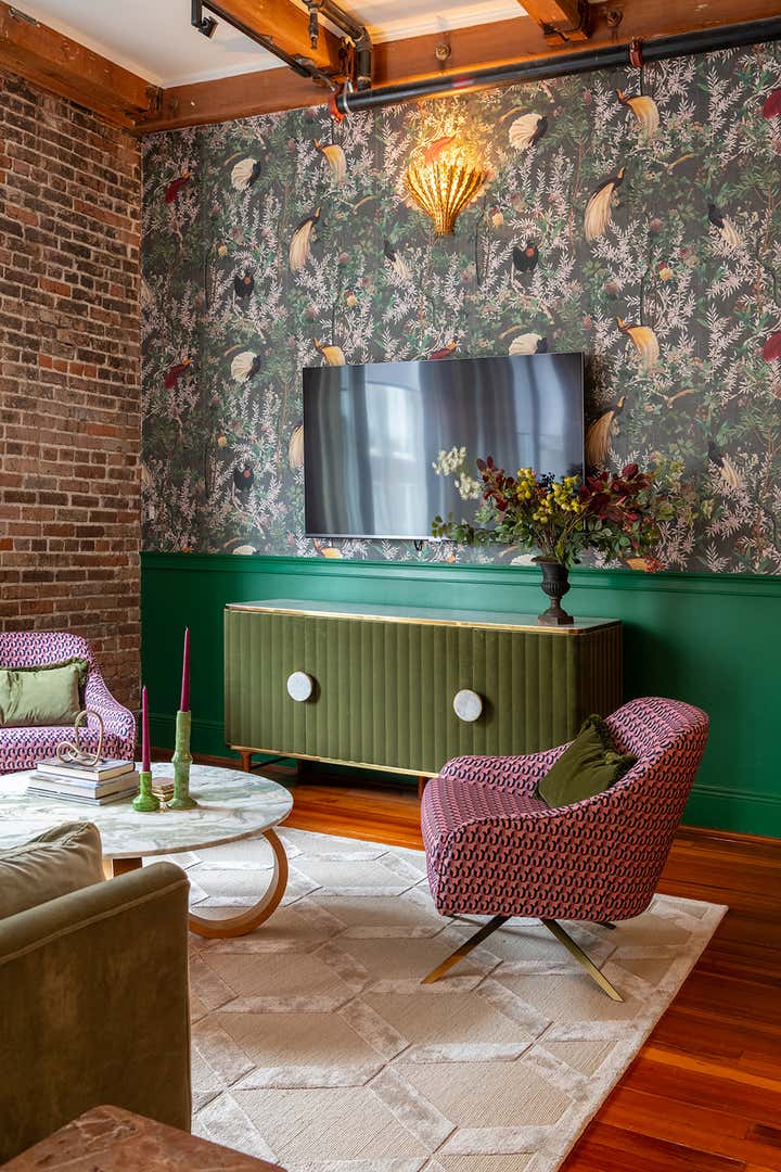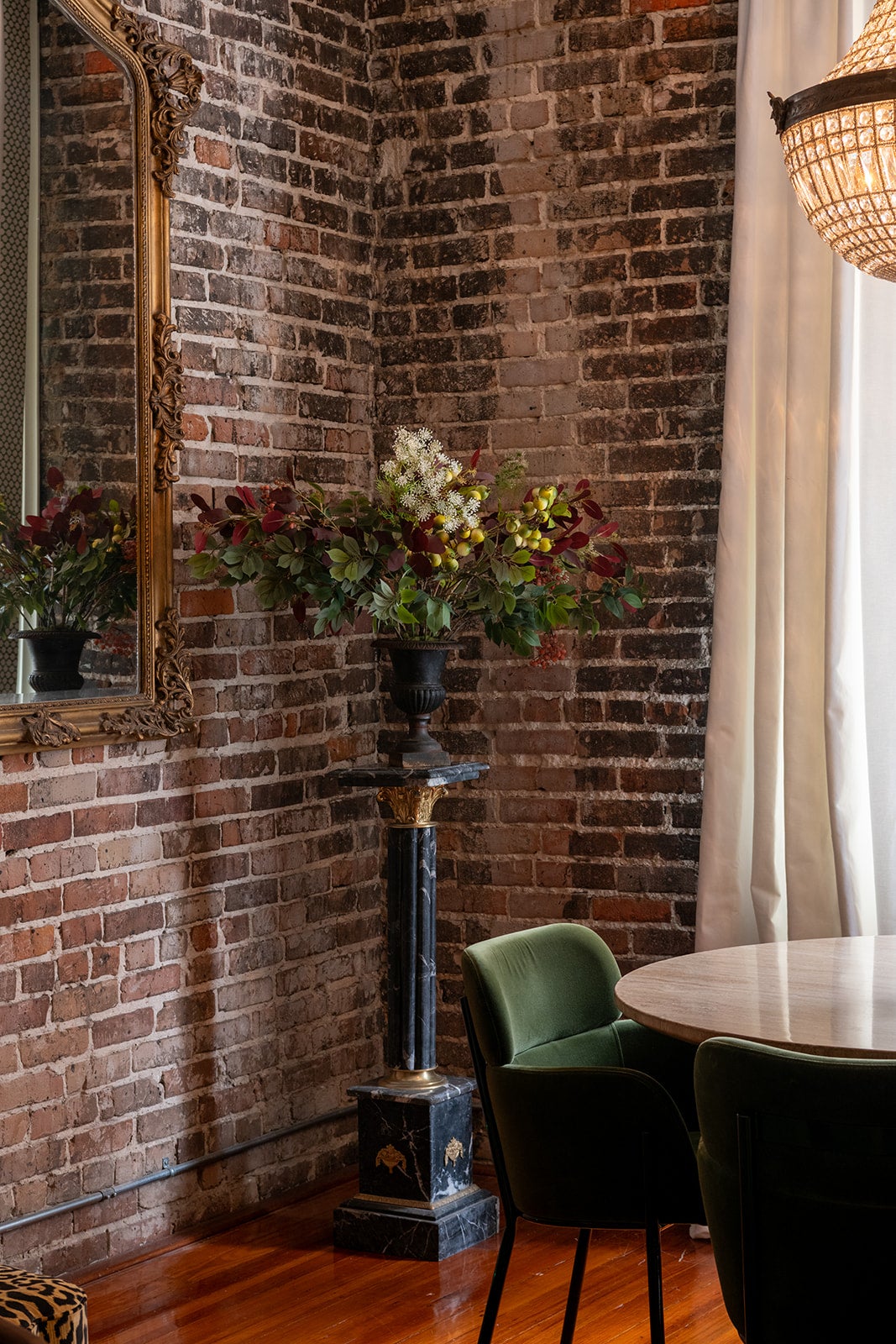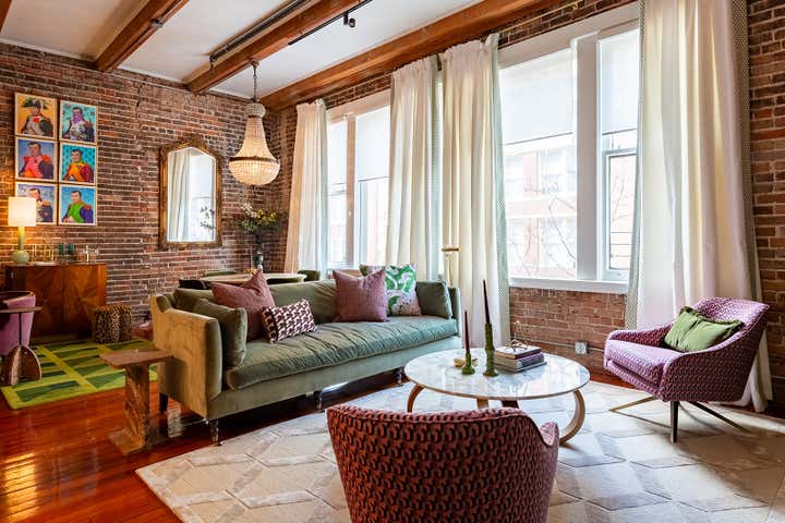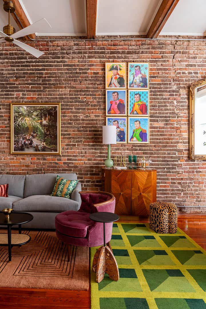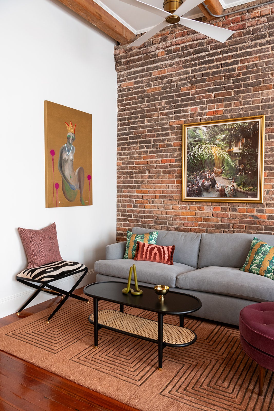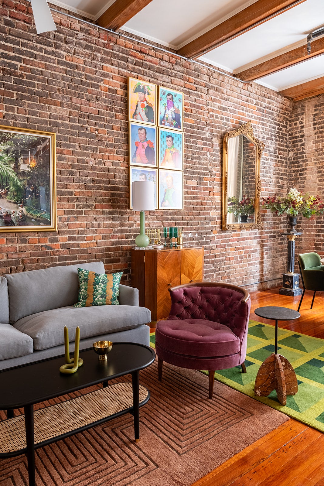 This New Orleans loft was designed to celebrate the building’s historic character while layering in color, texture, and collected pieces that feel personal and lived-in. Exposed brick and original architectural details set the foundation for a richly eclectic interior, where vintage furnishings, sculptural lighting, and bold finishes coexist with modern comforts. The result is a warm, expressive home that balances function with storytelling at every turn.