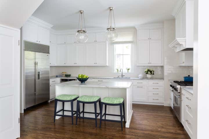 Charming greens and soothing blues served as the inspiration for this renovation of a historic property in Chevy Chase. The goal was to add light and a bit of fun into this sun filled home for a young family. The transformation made this charming home bright, colorful and fresh.