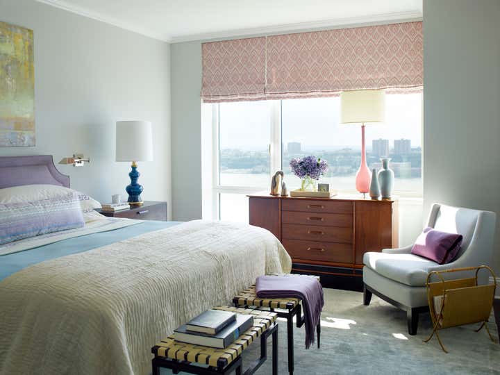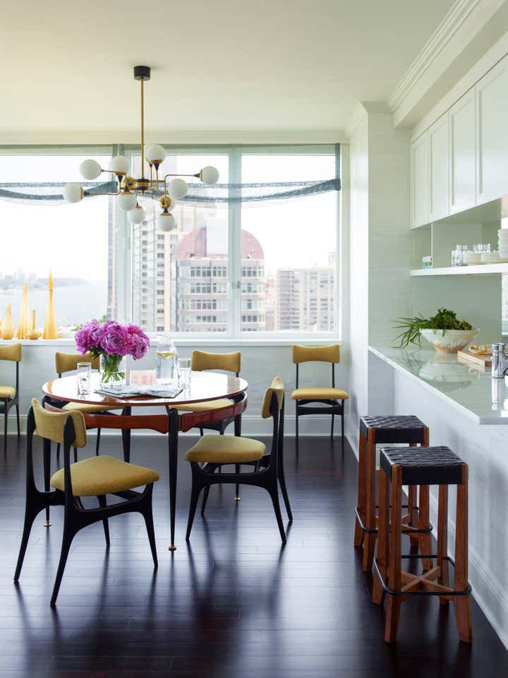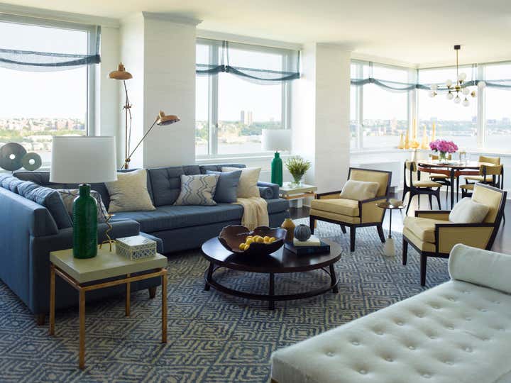 Featured in Modern Magazine, this three bedroom apartment on the Upper West Side of Manhattan features spectacular views of the Hudson River. The homeowners are a hardworking couple with young children so they wanted a comfortable environment that balances good design with true functionality. It features an eclectic mix of custom pieces, contemporary designs and vintage finds with a global influence. The palette is a range of blues and greens connecting the space to the outside.
