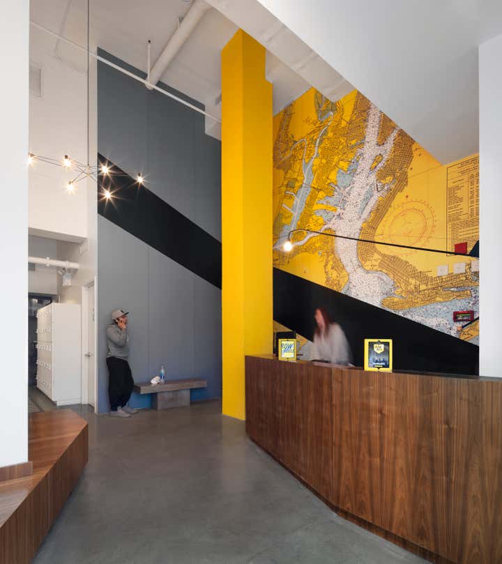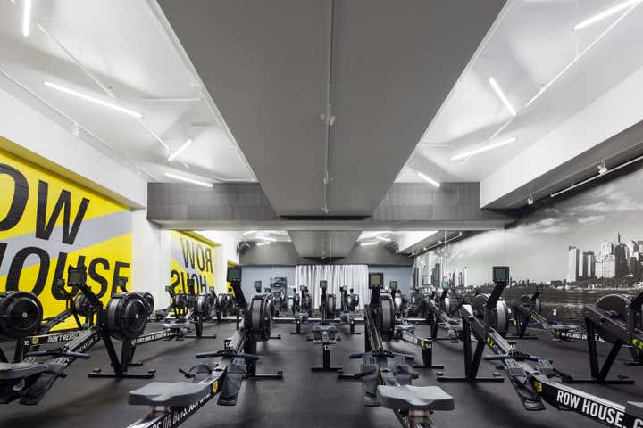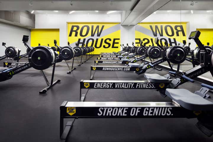 Row House was the first brick and mortar location of a rowing-based fitness and lifestyle brand. The studio occupied the ground floor and cellar level of a new construction condominium building on West 59th Street.