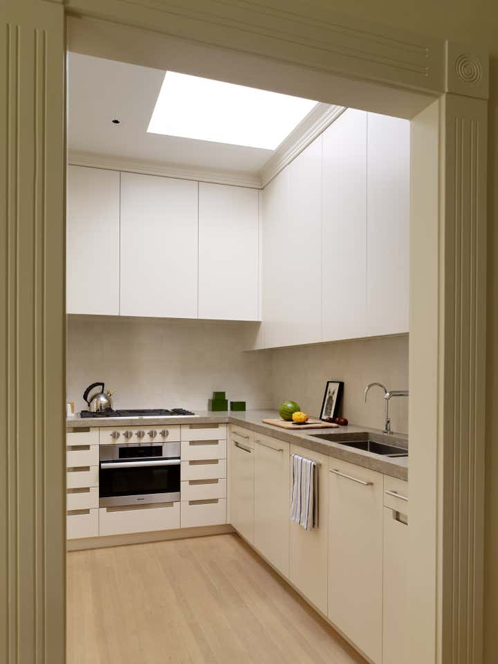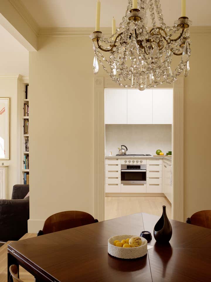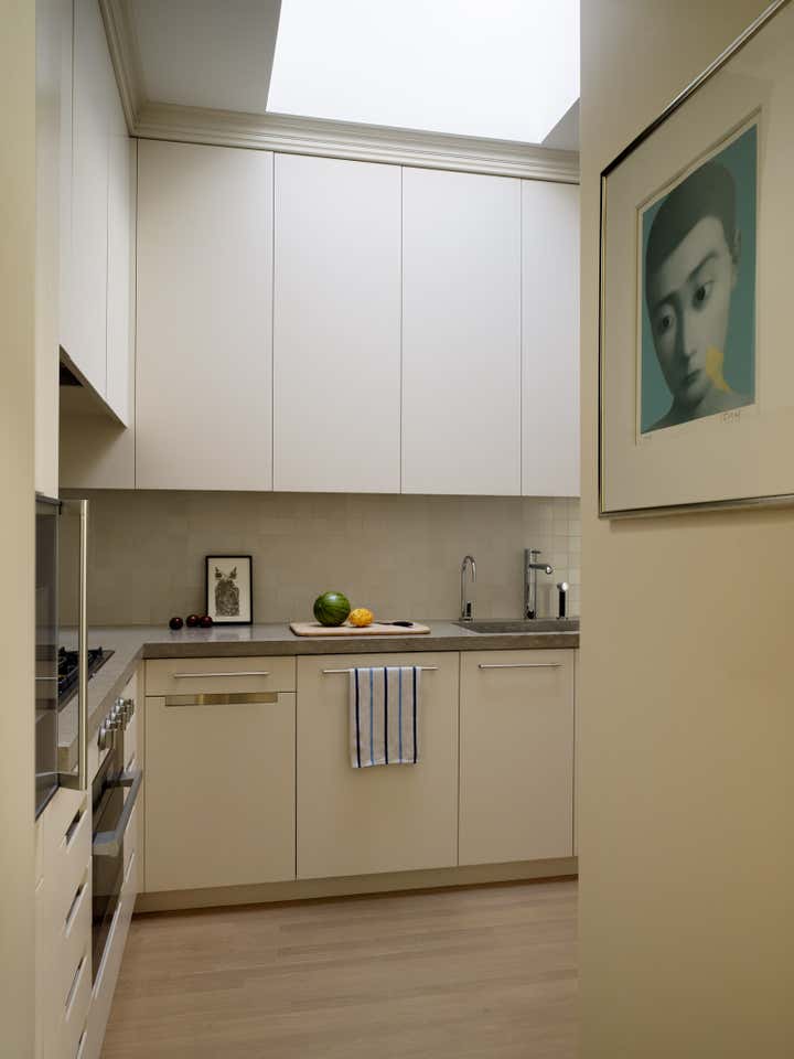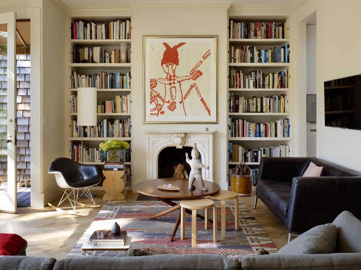 A balance between restoration and intervention, this house features its original layout (created in 1907) as well as an updated feel that was intended to bring together layers of history with an urbane sense of living. The lightness and airiness of its park-like setting–defined by a Thomas Church-designed garden (1972) and a 100-year-old redwood tree in the backyard–underscores our sue of a classic ivory-and-white color palette throughout the interior. The house acknowledges its past by incorporating its original crown molding, baseboards, fireplace surround, doors and hardware. It also references period details through custom cutout cabinet pulls and a tinge of green in the ivory wall color, which gives it a subtle vintage feeling. Together, the original architectural details and the designed elements–such as millwork and finishes–become a backdrop for a contemporary furnishings layout with various classic 20th-century furniture and objects found during the clients’ travels.