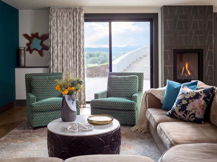 This Denver-metro new build interior design perfectly reflects one of the key aspects of design Andrea Schumacher Interiors is so well known for: infusing color and combining patterns and textures on furnishings, walls and home accessories.