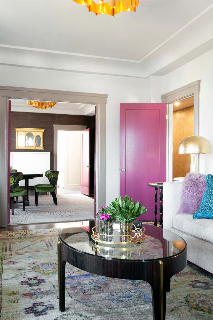 This art deco California home remodel designed by Andrea Schumacher Interiors is featured in House Beautiful online. The San Francisco flat interiors are eclectic with a bohemian flair and include bold patterns and splashes of berry. The spaces were created to be multi-functional and feminine, reflecting the homeowner’s lifestyle – a key ingredient in every Schumacher design!