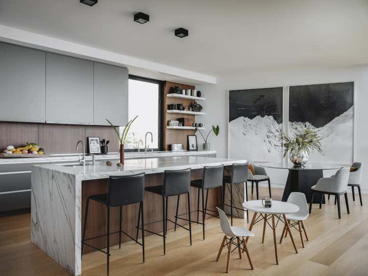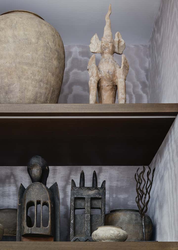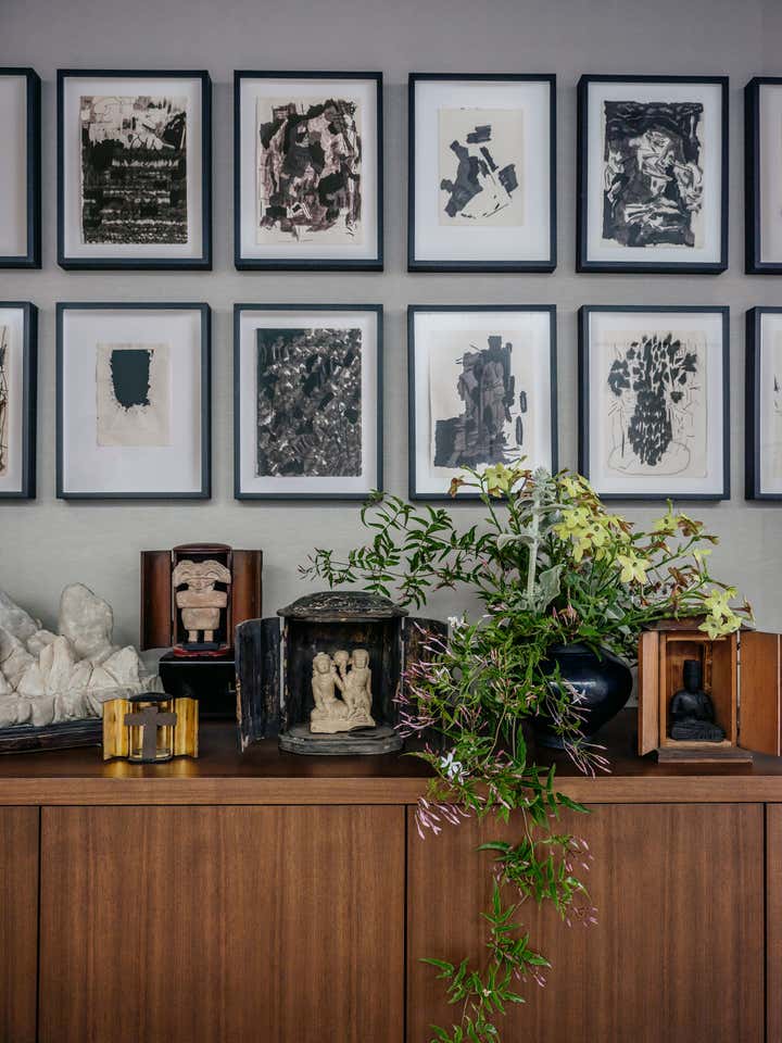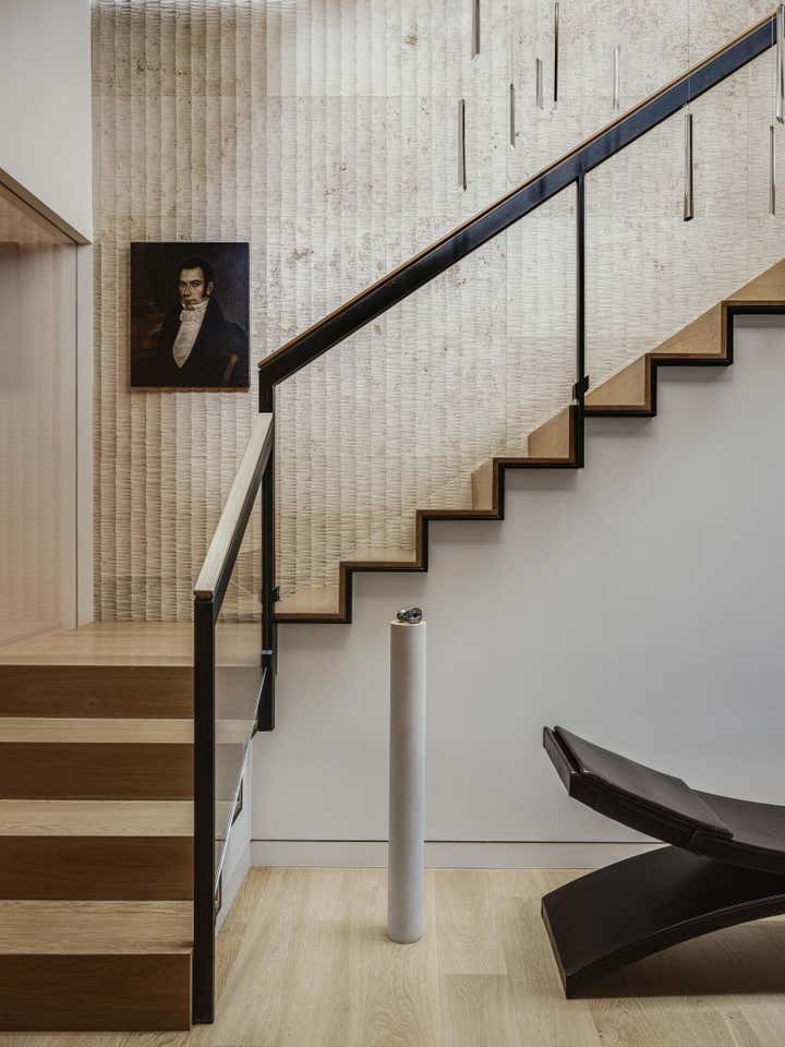 This project was completed over the course of three years in collaboration with architect John Maniscalco. It encompassed a full ground-up construction of 7500 square feet of living space, and involved selection of all interior finishes. The interior design was minimal yet eclectic, aided in part by the art curation. The art selection was not limited to contemporary works, with a collage of antiquities among the contemporary and modern pieces chosen for each space. The home was furnished with many contemporary custom pieces alongside vintage reupholstered furniture, which gave the space a unique dialogue informed by a range of time periods.