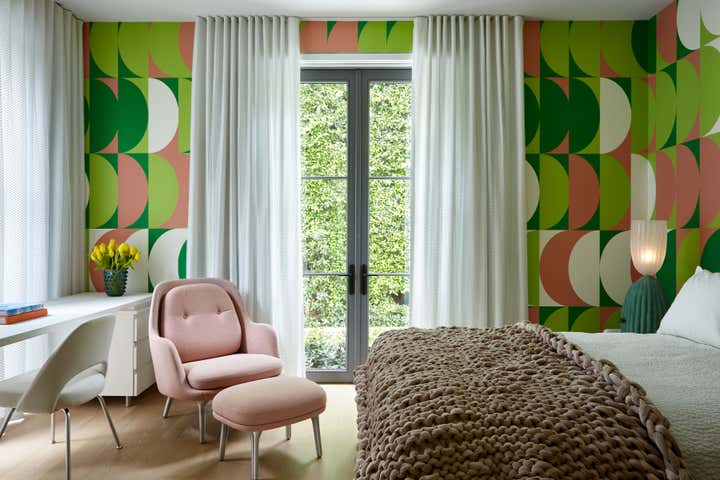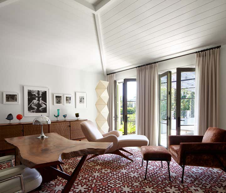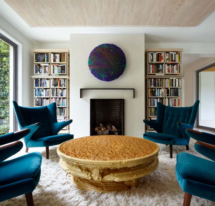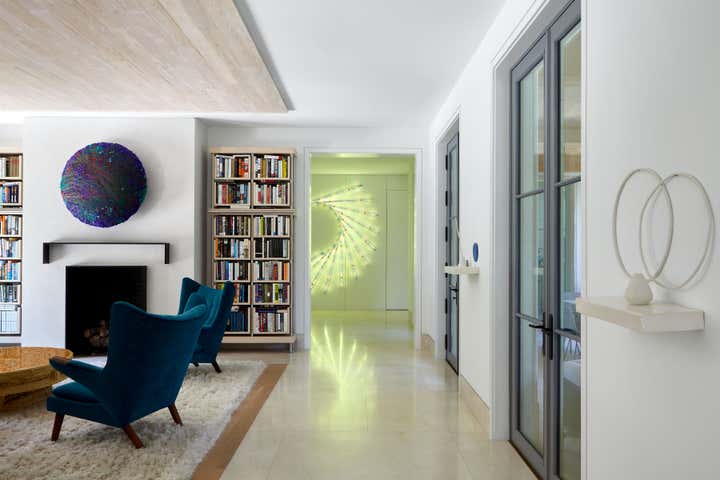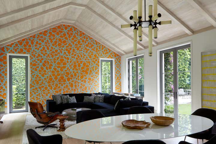 The Seaside Residence uses vibrant colors and textures to create a rich, comfortable atmosphere for a family s private beach escape. Art curation is an integral part of our design process — a custom Judy Ledgerwood installation is one among many pieces sourced that bring this home to life.