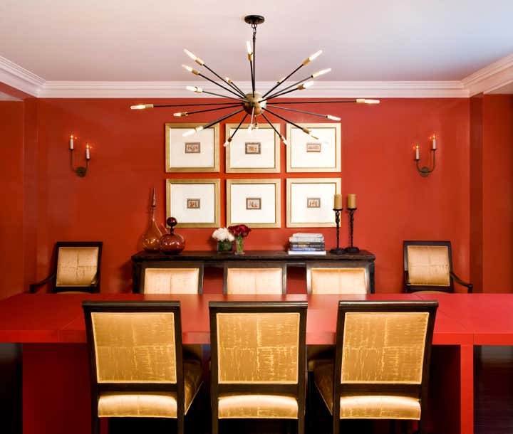 The design of this full-floor residence aimed to complement its iconic, prestigious address. The client requested a “classic Fifth Avenue apartment” while also infusing the space with youthful elements through color and modern finishes. The resulting design is a jewel box of surprises, from a dining room lacquered in Chinese red to a luxurious master bedroom in shades of amethyst.