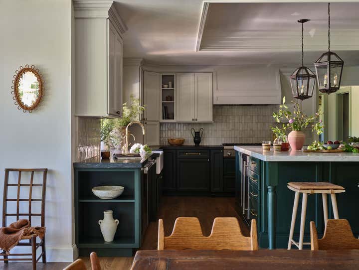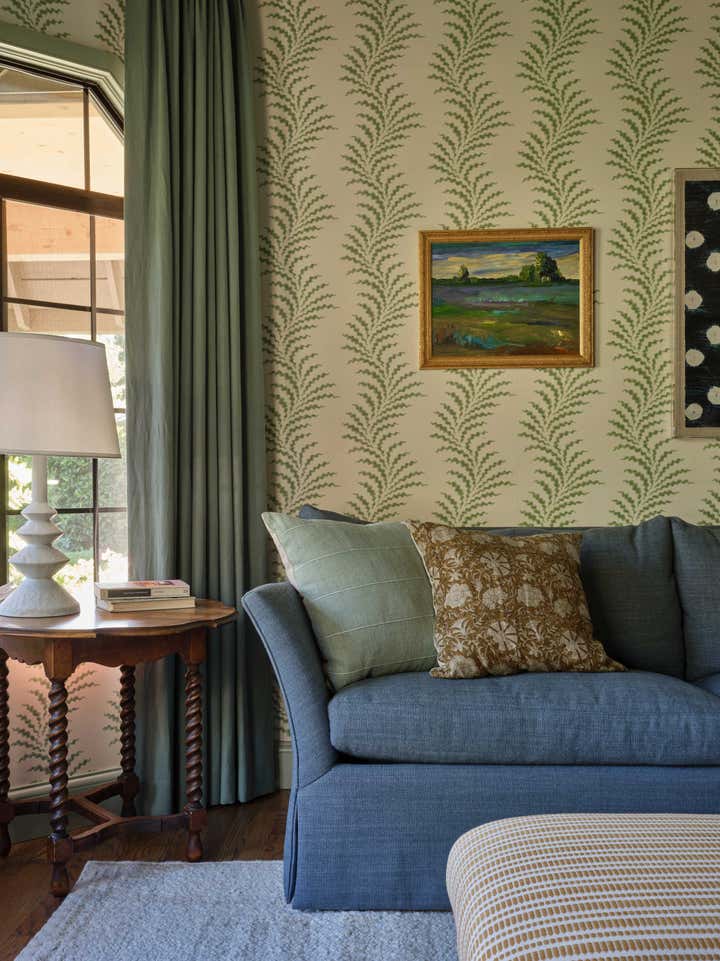 Inspired by traditional English cottages, we leaned into repurposing old furniture with new fabrics and assigned each room its own color story through paint and patterned textiles.