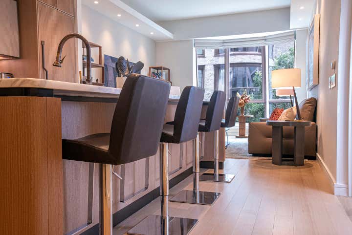 My clients and I looked for furnishings with clean lines and organic shapes while keeping within a warm neutral palette. The end result is a beautiful and modern cozy home in the heart of New York City.