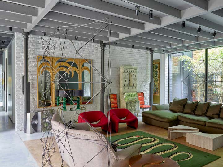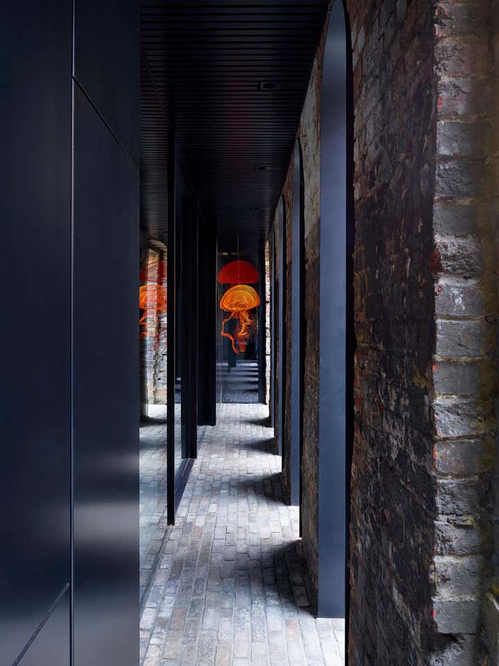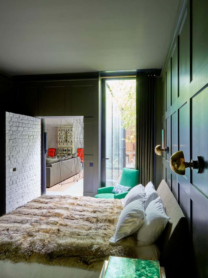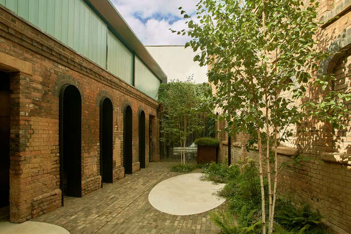 The street-facing building was renovated to become a small house with two floors of office space adjacent. The rear building has been redeveloped as a large private house set back from the street, approached via a cobbled walkway. This brick façade retention with new build in steel and glass has become a five-bedroom 500 sqm house set back from the street.