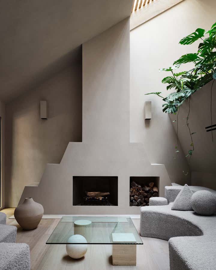 Nestled in the woods, along the side of a slope, a 1972 house built by famed architect Eugene Futterman was an architectural gem awaiting its revitalization. Drawing on interiors that had left an imprint on him, including the exquisite lairs featured in the James Bond films of his youth, Godbold reimagined this once forgotten home.