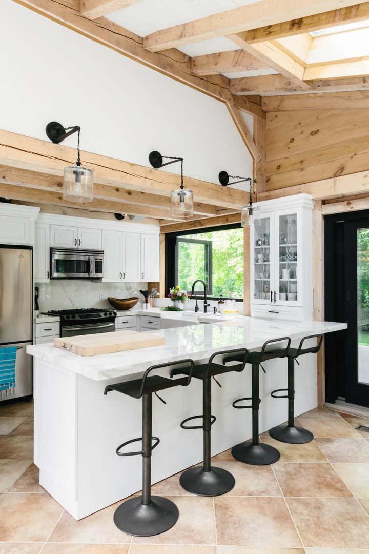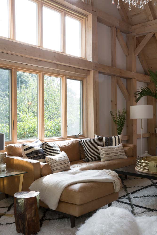 The cozy nature of this home is enhanced through our use of earth tones and soft features. The neutral color palette lets the forest view shine through the large windows, keeping a serene ambiance.