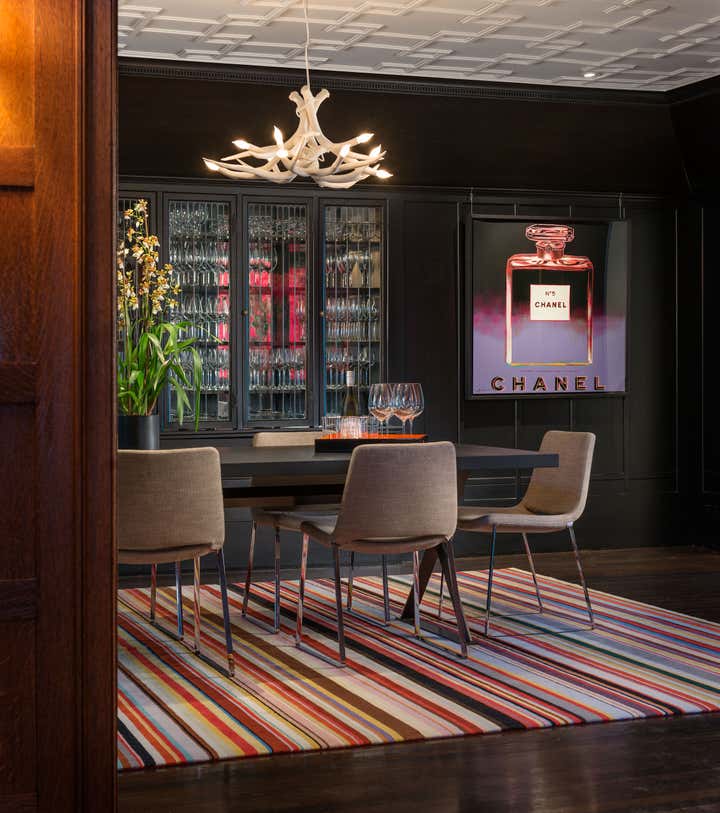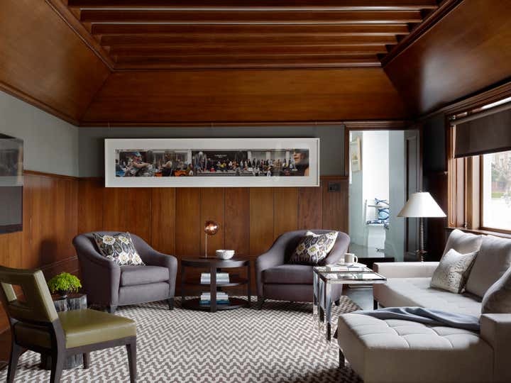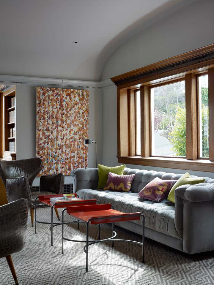 This historic Tudoresque home was built in 1897 by the prominent California landowner James Irvine, who lived there until just after the 1906 earthquake. The clients, who are only the third owners to reside in the house, undertook a massive remodel—including refinishing much of the original oak paneling and woodwork—and fully updating the baths and kitchen to bring the home into the 21st Century. The homeowners are connoisseurs of modern art, and JKA created an environment that functions as a sumptuous but understated backdrop for their ever-expanding collection. A palette of soft-hued paint colors paired with furnishings that combine both comfort and personality, allow the artworks to take centerstage without sacrificing style.