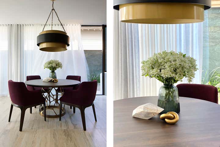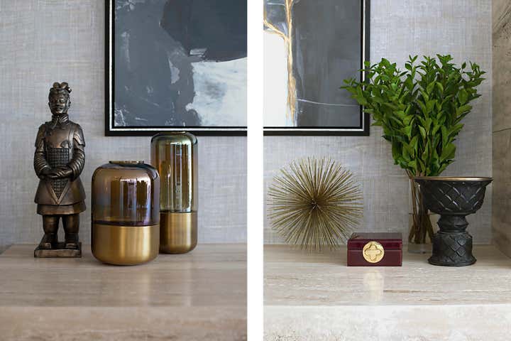 With a knack for bringing a shot to life, I enjoy arranging objects, furniture and products to tell a story, what props to add and what to take away. I make sure that the composition is as complete as possible; that includes art, accessories, textiles and that finishing layer. Here, the introduction of soft finishes, textures, gold accents and rich merlot tones, are a welcome juxtaposition to the hard surfaces.