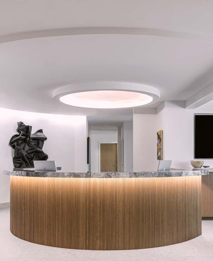 Clean lines and modern finishes are paired with comfortable, ergonomic furnishings to enhance both functionality and style. Natural light, combined with artful lighting design, highlights the center’s colorful elements, while thoughtful use of materials ensures a hygienic and sophisticated space. The result is a cutting-edge facility that promotes healing in a dynamic, positive setting.