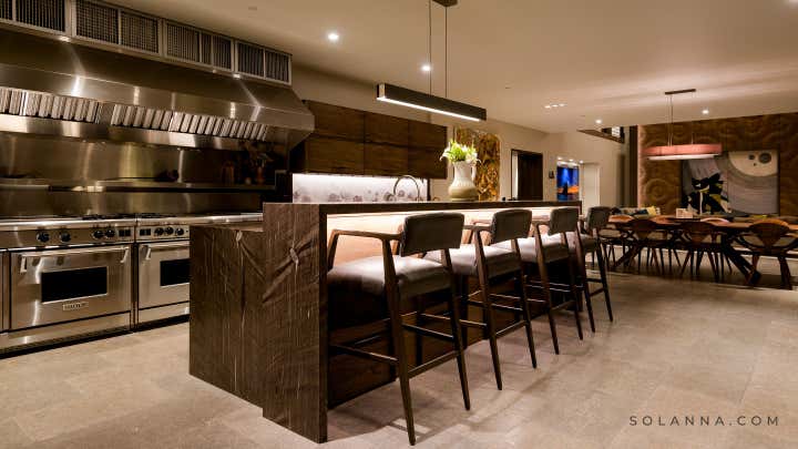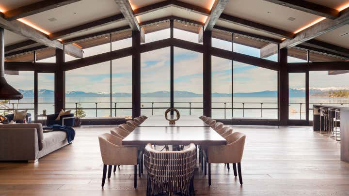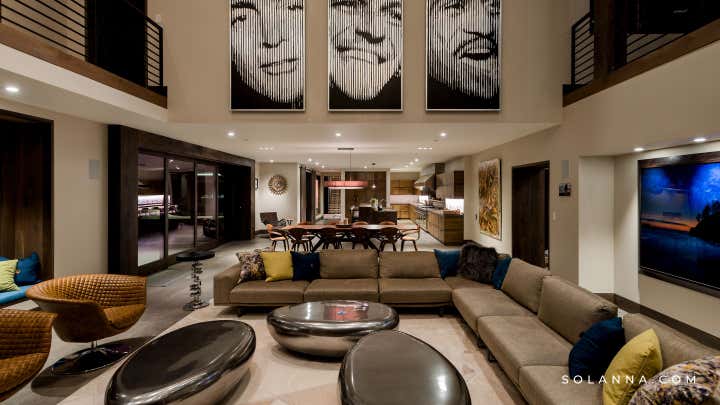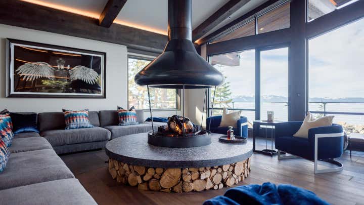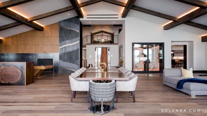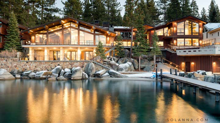 The historic Villa Harrah, on the eastern shores of Lake Tahoe completed, a 10-million-dollar renovation of the over 22,000 square foot property that pays homage to its 1963 origins while simultaneously introducing a modern-day aesthetic. Solanna Design spent 4 years on the project and was the only designer hired by the owners to renovate this unique property. Once owned by the famed Harrah Casino Magnate, William Fisk Harrah, this sprawling estate was built specifically to entertain his legendary friends such as Frank Sinatra and the rest of the Rat Pack. Famed celebrities came here to party and crash for a while in this secluded cove. Solanna Design LLC has modernized this home with a new purpose and identity for a new era.