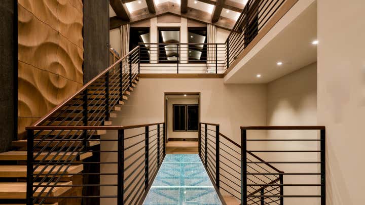 Valued now at over 30 million, the Villa Harrah has been reinterpreted with resort-style amenities that include a relaxing salt cave, indoor spa and sauna, plunge pool and intriguing cinema room. While designed to make the most of its spectacular sweeping views of the lake and mountains, the interior spaces provide nooks and crannies that cozily boast handcrafted use of materials at every turn. Sourced materials and finishes from all over the world mix to create interesting and sometimes often hidden surprises in each room.