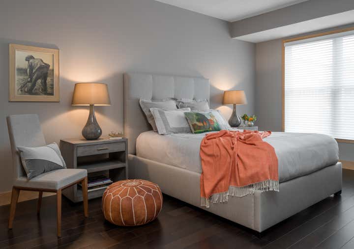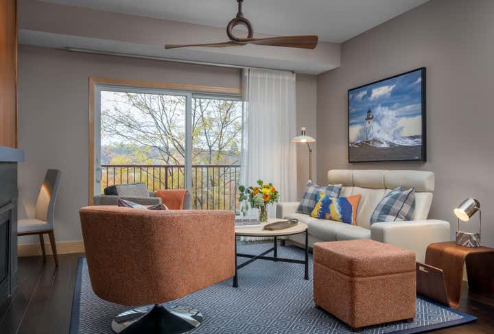 This very active couple moved from a large, traditional home to a much smaller condo once their kids were gone. They wanted a simple, yet vibrant space to reflect this new phase. They were attracted to more linear lines, slight texture, and pops of the unexpected. The new environment also reflected on one of their favorite places…the North Shore of Lake Superior, Minnesota.