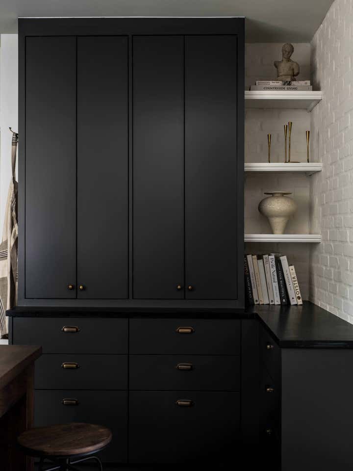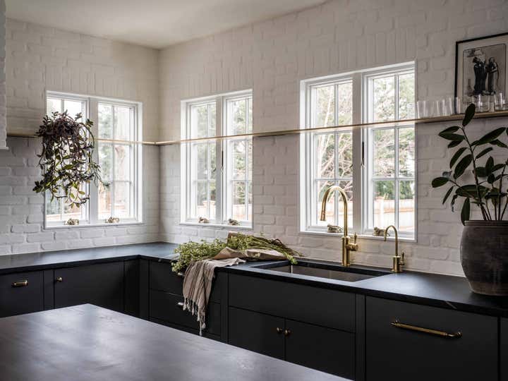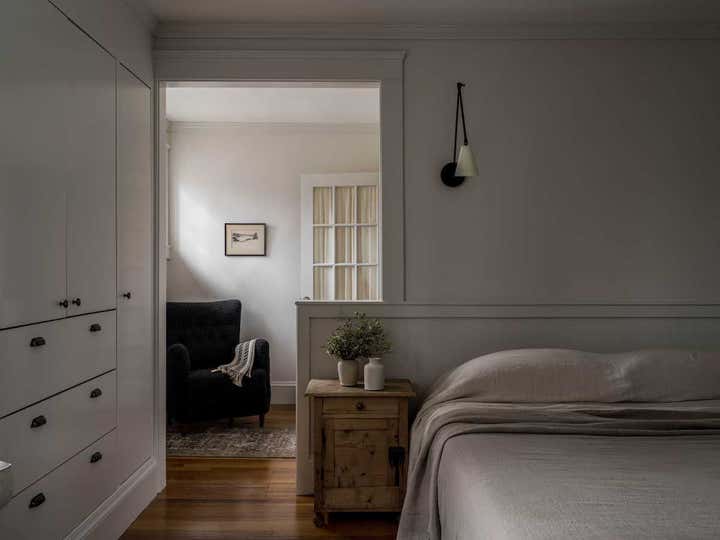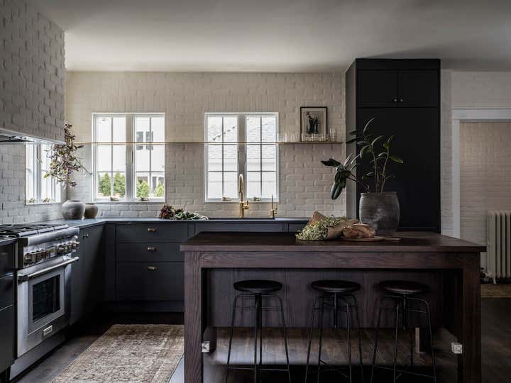 In a full-scale design, renovation, and furnishings project, we completely transformed this space for our clients by infusing it with only the most charming of details. The first-floor expanded kitchen features smoky black cabinetry and textural brick walls, while the second-floor main suite boasts incredibly well-appointed built-in closets that add extensive storage all while incorporating sleek colonial-inspired character back into the space.
