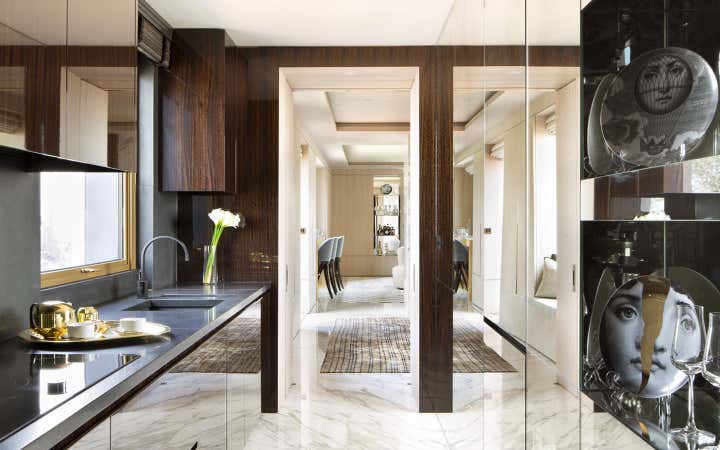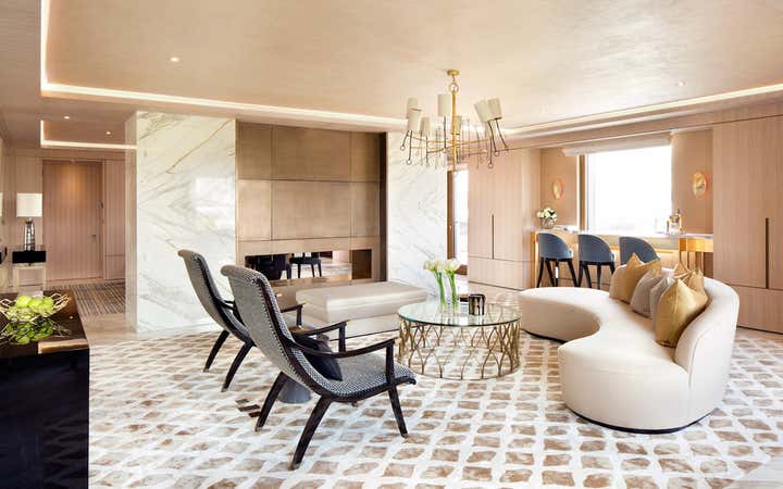 This Penthouse occupies the 6th and 7th floor of a contemporary mixed use building, designed by architect James Stirling. The St James Park and Mayfair location is breathtaking – as is the view of London, which we emphasised with our open plan layout.