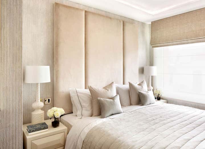 The limed oak panelling which wraps the walls and ceiling provides a simple, elegant light filled interior to showcase the art, furniture and soft furnishings.