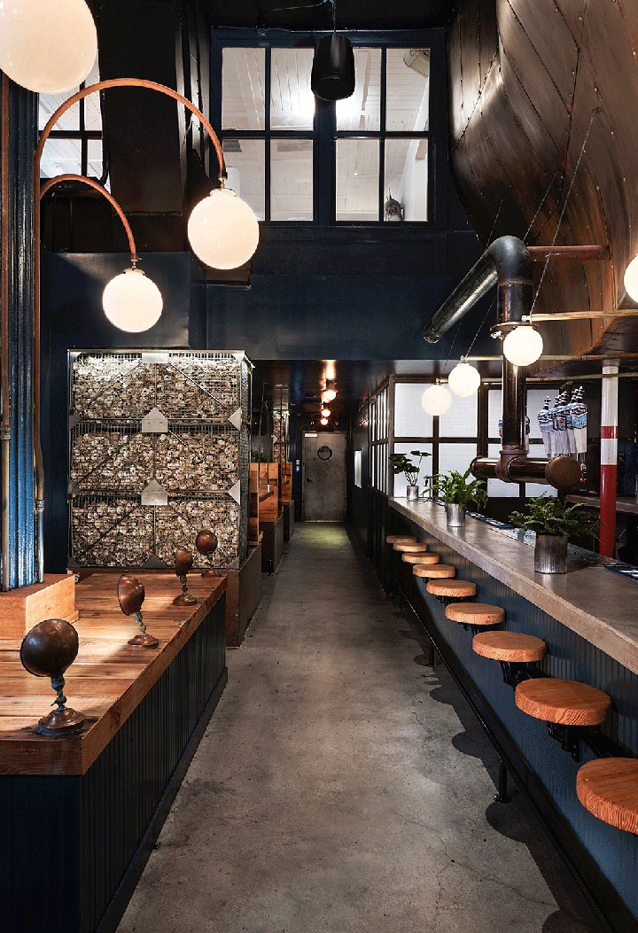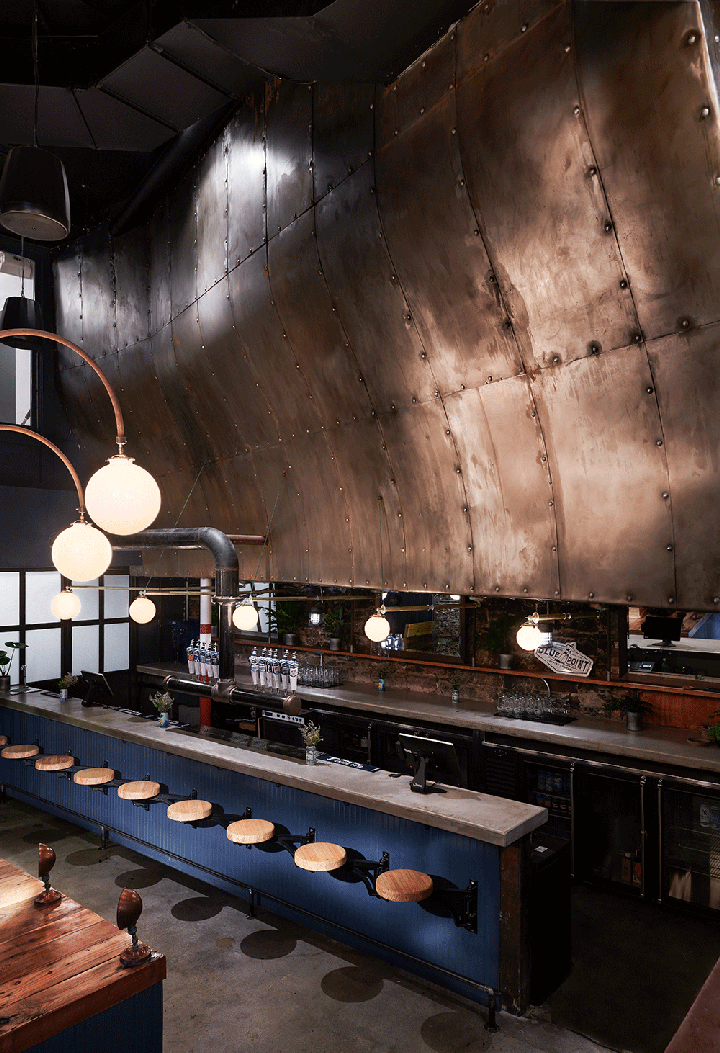 A brewpub off a cobblestone street in Dumbo, one block from the Brooklyn waterfront, for a client that prides themselves on their coastal Long Island heritage, award-winning beers and innovative brewing team, and a commitment to enjoying a good time. The design was intended as an immersive introduction of this brand to New York City, combining an emphasis on coastal heritage with a celebration of beer and brewing that honors the raucous festivity of life "below-deck."