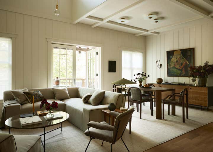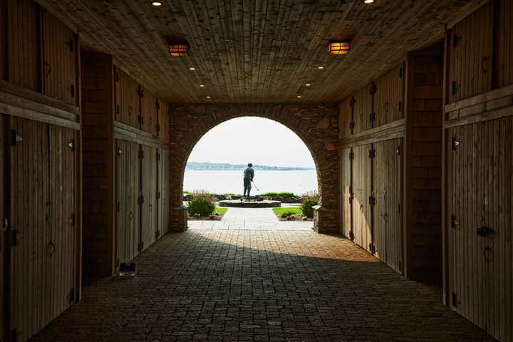 A country club respite for our busy professional Bostonian clients. Our clients met in college and have been weekending at the Aquidneck Club every summer for the past 20+ years. The condos within the original clubhouse seldom come up for sale and gather a loyalist following. Our clients jumped at the chance to be a part of the club s history for the next generation. Much of the club’s exteriors reflect a quintessential New England shingle style architecture. The internals had succumbed to dated late 90s and early 2000s renovations of inexpensive materials void of craftsmanship. Our client’s aesthetic balances on the scales of hyper minimalism, clean surfaces, and void of visual clutter. Our palette of color, materiality textures kept to this notion while generating movement through vintage lighting, comfortable upholstery, and unique forms of art.