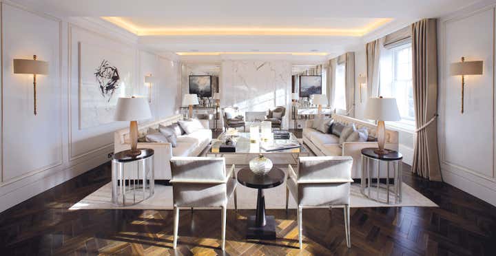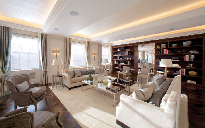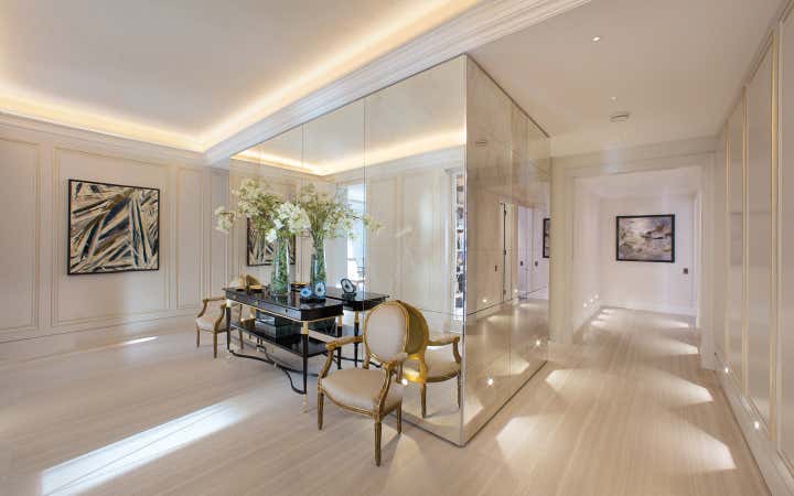 This striking apartment is situated on Grosvenor Square. This interior combines unobtrusive modernity with an understated elegance – a timeless mix of classical detail and modern sophistication.