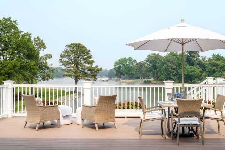 The transformation of The Oaks Waterfront Inn, the wedding venue and hotel located in Royal Oak, Maryland, includes a new lobby, modernization of the ballroom, guest suites, newly constructed guest cottages, and a new restaurant and bar – The Oak Room. The interior design, helmed by Carol Wheeler and Leigh Draper of Jamie Merida Interiors, features top-of-the-line choices including pieces from the Jamie Merida Collection for Chelsea House (see list below of additional vendors).