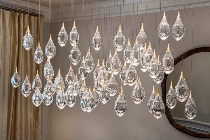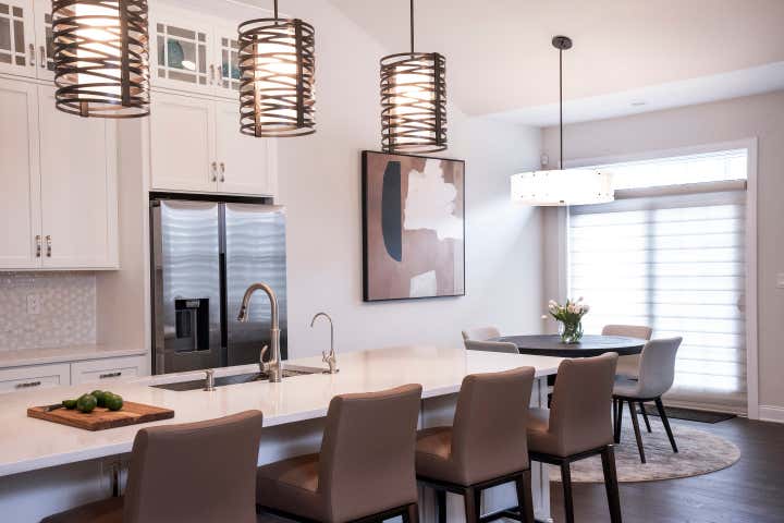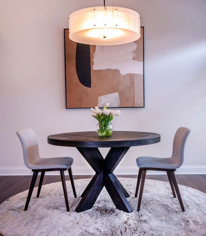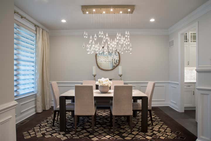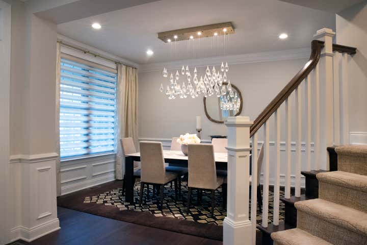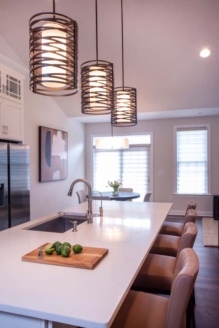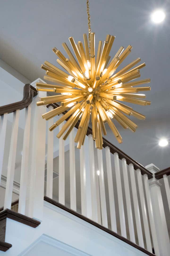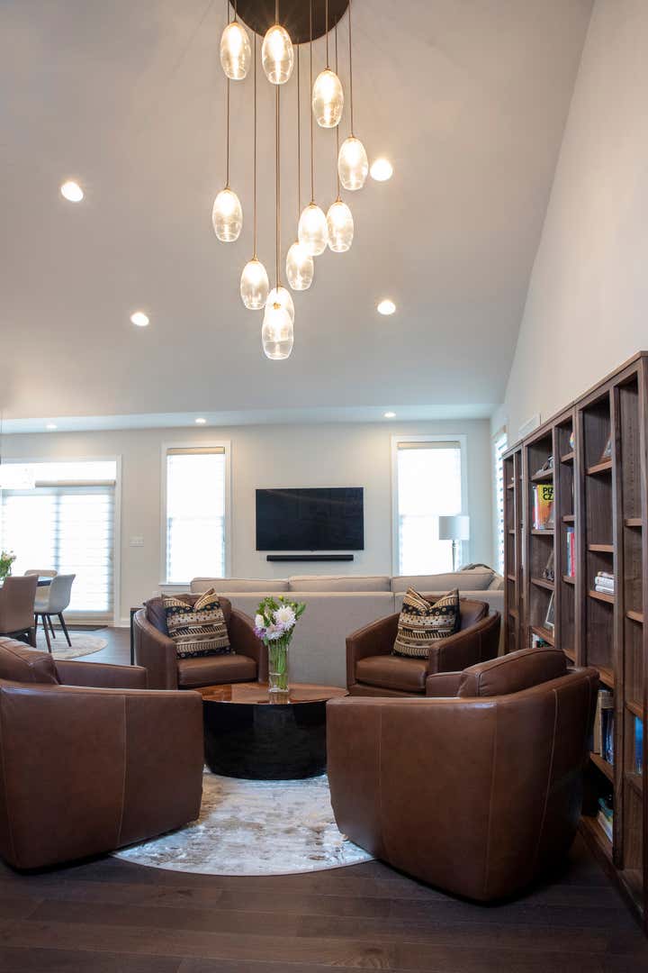 This new construction townhouse was transformed into a contemporary family home with clean lines, a warm neutral palette and custom light fixtures that steal the show.