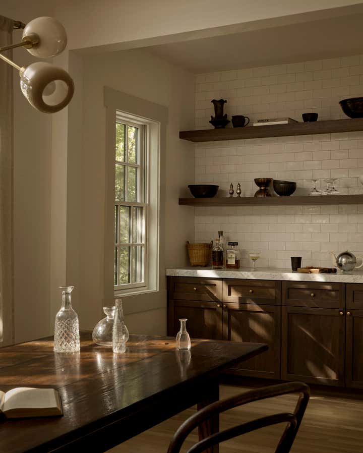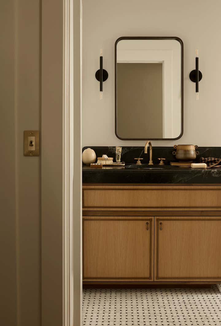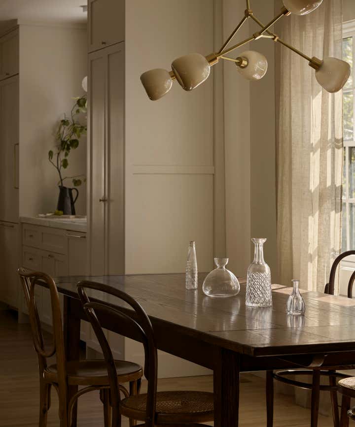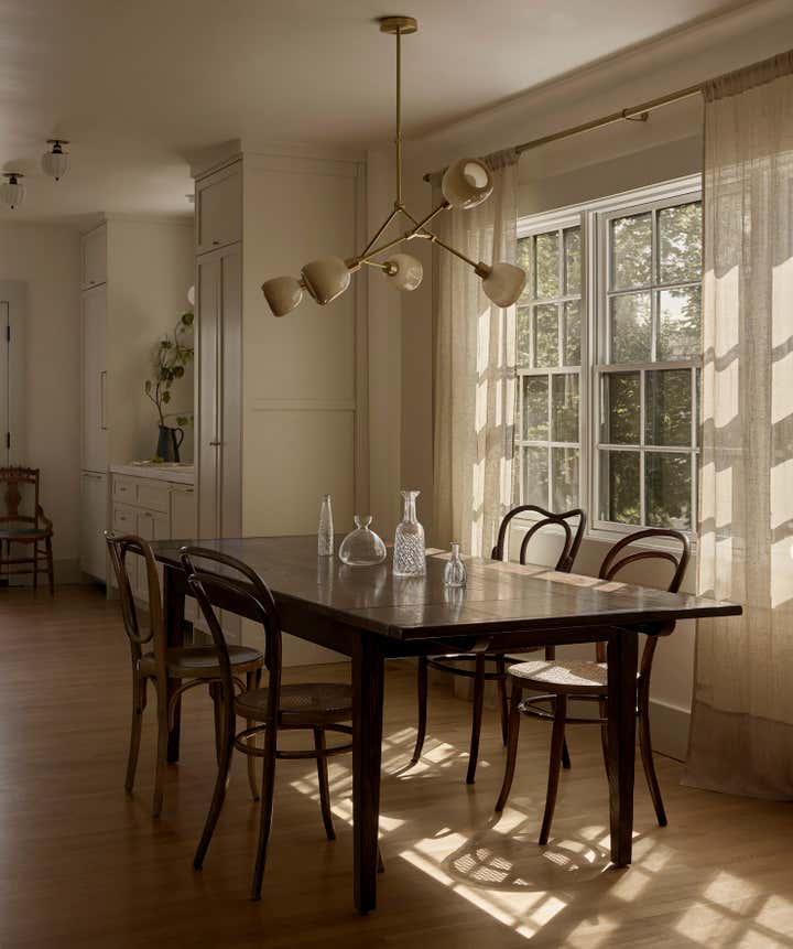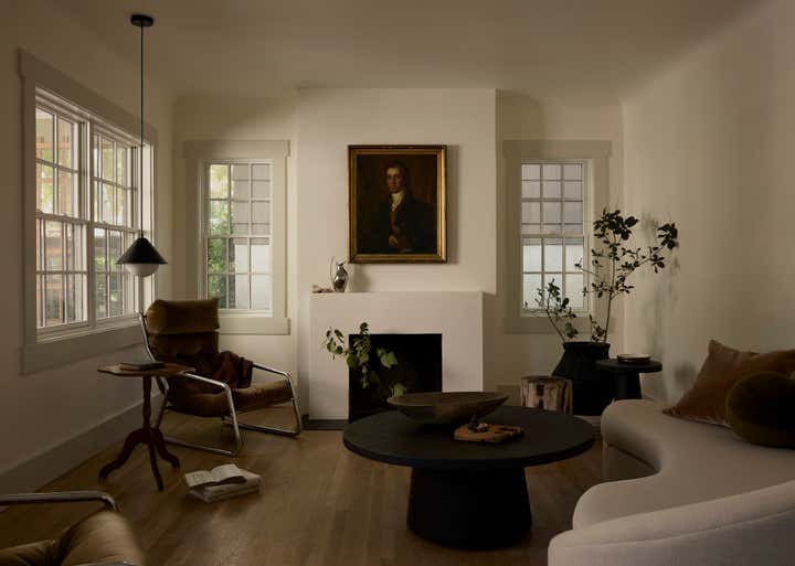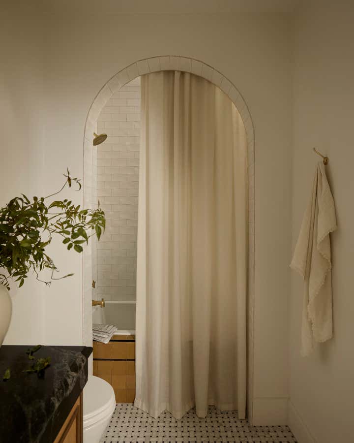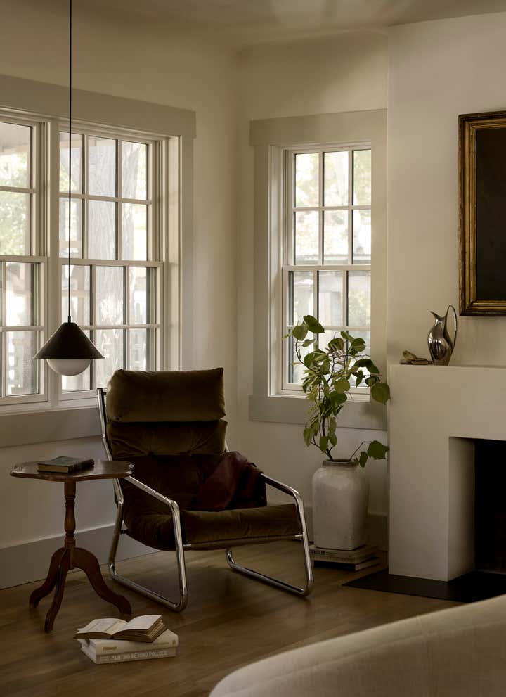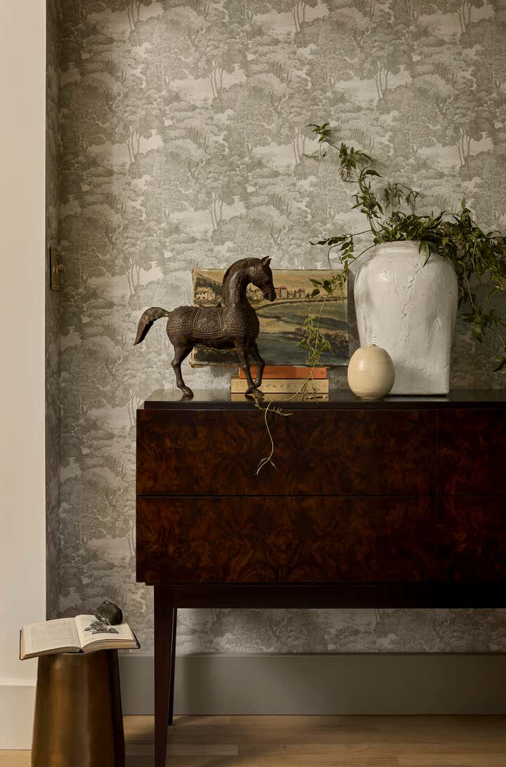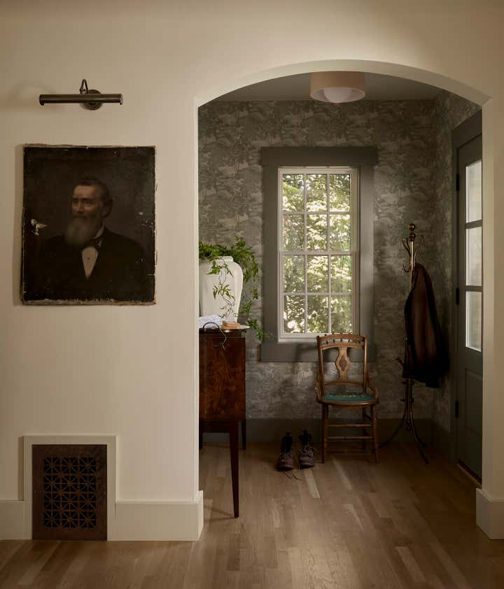 Since our clients majorly downsized when they moved into this home, our top priority was to create an efficient design that doesn’t compromise on aesthetic. To that end, we opened things up while honoring the historic home. With the help of our architect, Matt Hintze, we moved the stairs, re-did the fireplace, knocked down a few non-structural walls and fully renovated the kitchen and bathrooms. In conjunction with making it livable, we made sure that even our new additions, like wallpaper In the entry and the archway in the primary bath, feel as if they’d always been there.