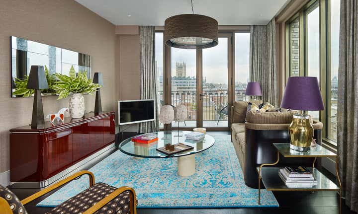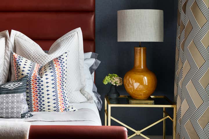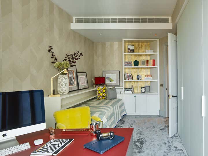 The three-bedroom apartment ( 1,800 sq ft) kicked off the interior design based on the love of two fabrics with an African print. The result is a fun yet sophisticated décor with an ethnic vibe. Subtle references to the original textiles have been carried throughout the space to give cohesion to the interesting and unexpected colour palette.