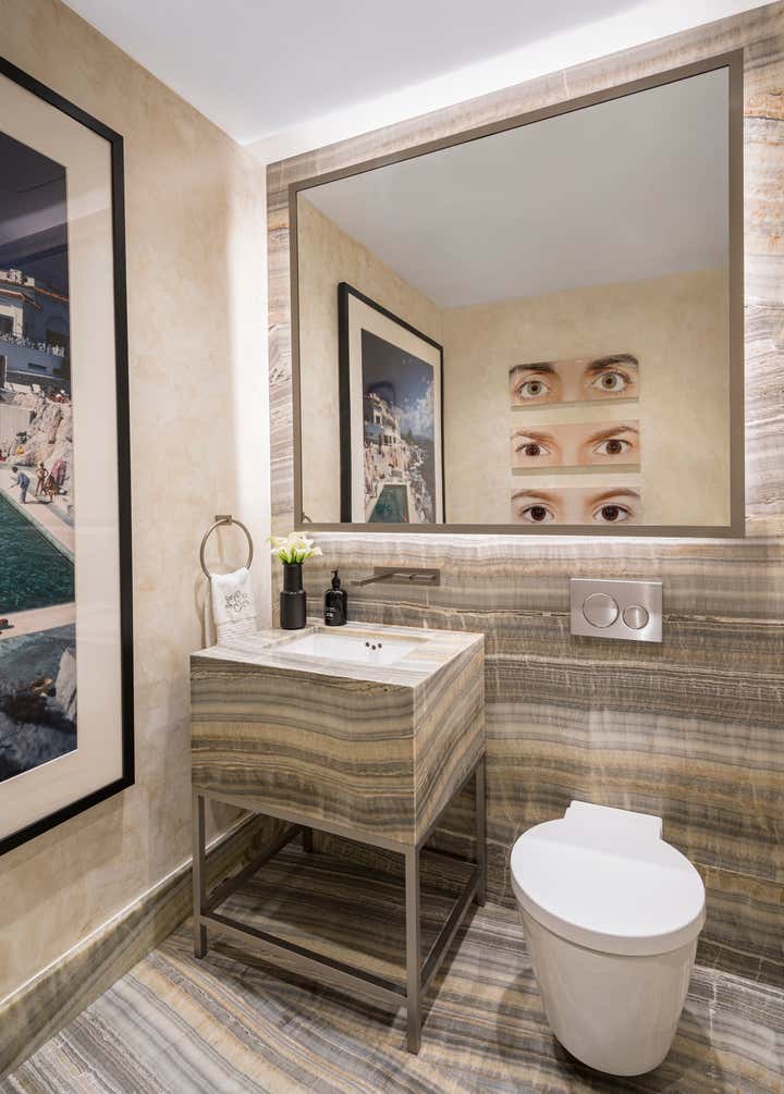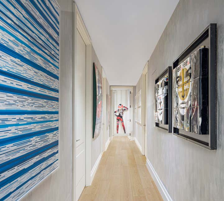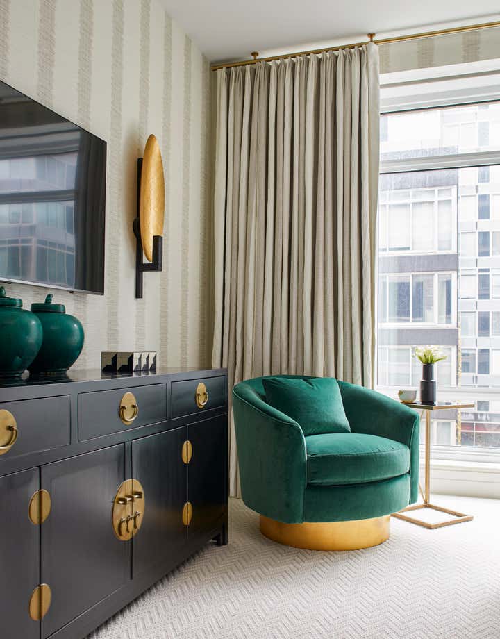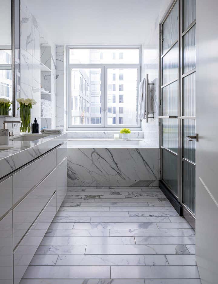Tribeca apartment designed by Jennifer Mehditash of Mehditash Design. Three bedrooms, with a beautiful custom walk in closet in the master bedroom and a high gloss lacquered home office space with gorgeous leather paneled cabinetry. All the millwork was custom designed for this apartment in the heart of Manhattan, with all the luxe comforts one would expect. Located in the 70 Vestry building with amazing views of the Jersey skyline over the Hudson River.