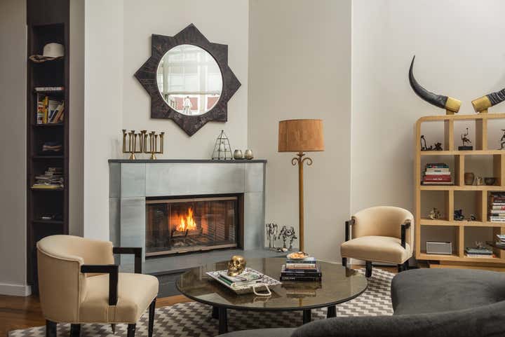 A purposefully subdued palette of layered gray furnishings throughout infuses warmth and tangible calmness. The eclectic collection of furnishings, objects and art were woven with the architecture to provide a meditative escape from the busy city below.
