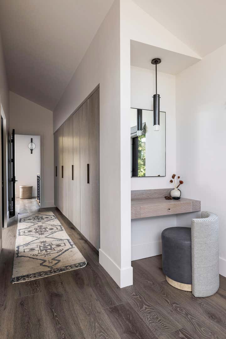 Located in Truckee, CA, this remarkable home underwent a complete transformation, with a comprehensive gutting and remodeling process that included additional square footage. Our interior design team was entrusted with every intricate aspect of the project, from space planning and finish selections to the procurement of the furniture. We even designed some custom furniture for the space, such as the entry console - featuring a plaster finish and leather drawer fronts. Serving as a cherished second home for the family, this haven embodies their passion for entertaining while providing a serene retreat for relaxation. Emphasizing sustainability, we purposefully utilized predominantly natural materials that mirror the surrounding environment of Lake Tahoe. Noteworthy details include the abundance of exquisite wood finishes, elegant basalt tile, luxurious marble, and even a sink crafted to replicate the topography map of Lake Tahoe - a truly extraordinary touch. Visit our website for more details or get in touch to chat about your renovation project or new custom home.