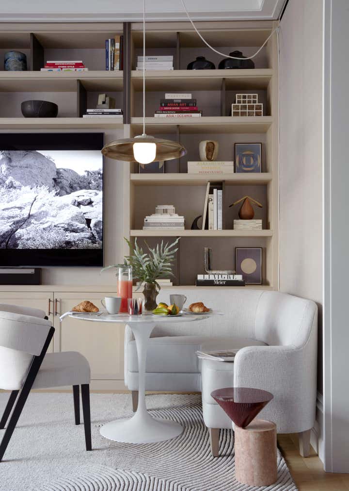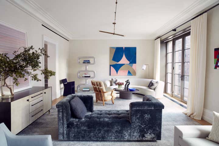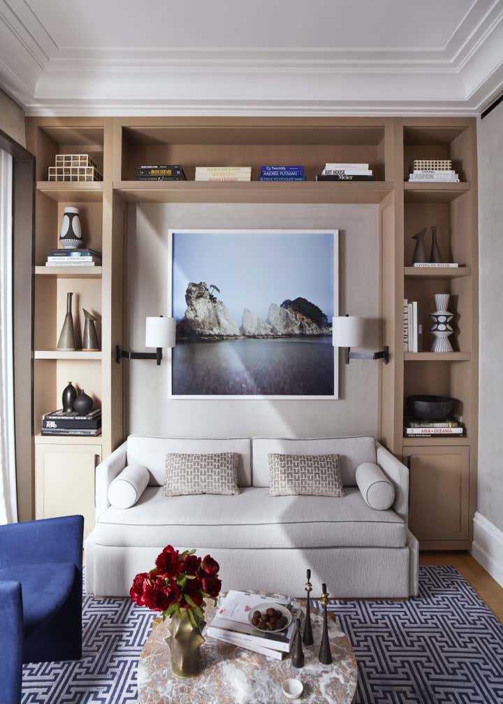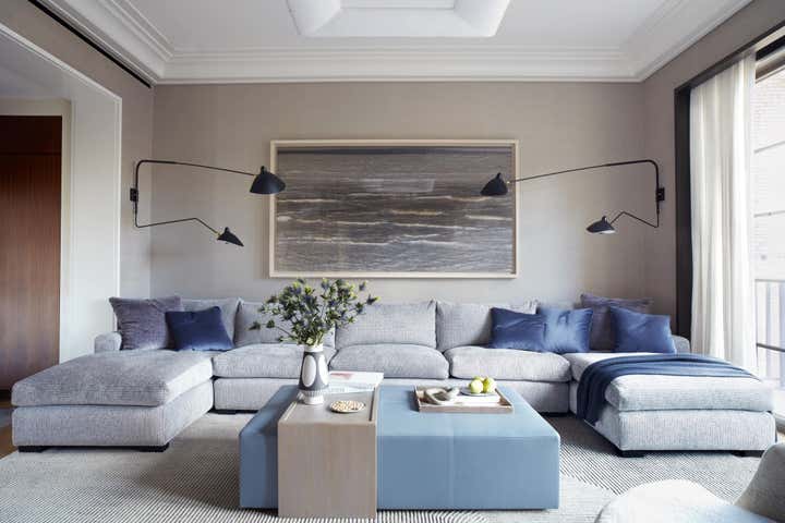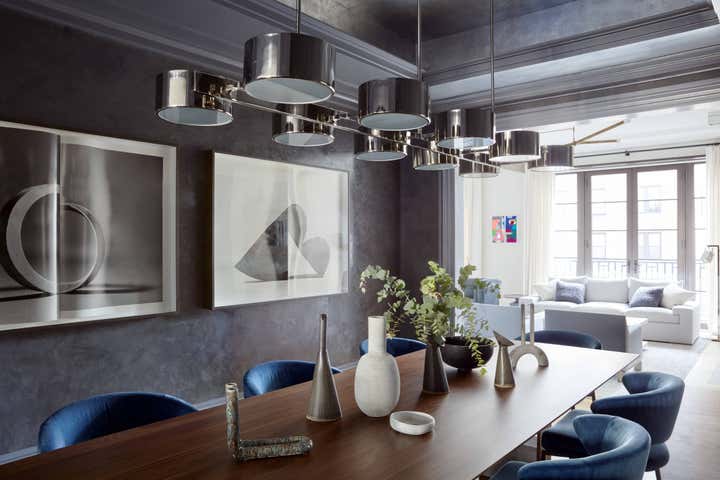 The palette for this artful Upper East Side home was composed of layers of textured neutrals and tones of blue, as well as elegant metal accents. The existing architecture provided a backdrop on which to add warmth through the addition of moody plaster finishes, woven wallcoverings, and light oak millwork. Extra care was given to custom rug designs with varying levels of pattern, and on selecting accent pieces that offered contemporary pops of color. The project was an exercise in putting finishing touches on a home with "good bones," to create interiors that feel integral.