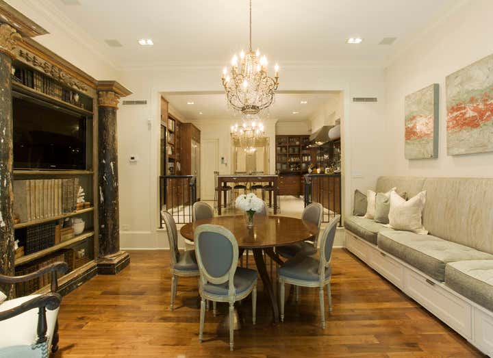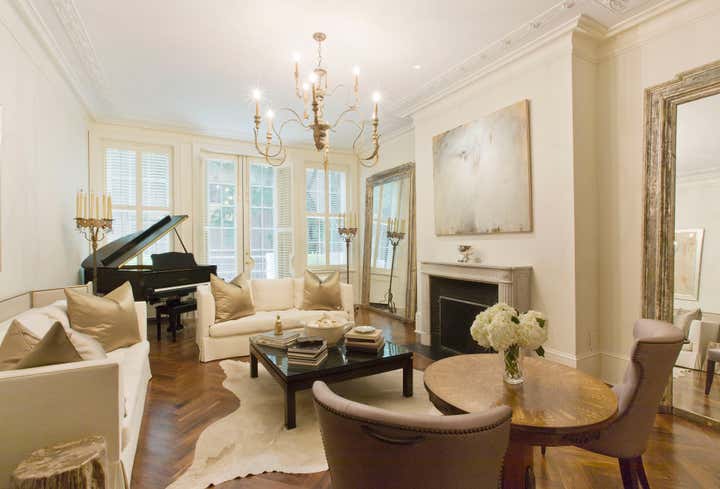 French antique meets New York chic in this glamorous Manhattan townhome. Designed with the classicism of traditional french interiors but updated to suit a stylish urban lifestyle, the result is a breathtaking space that is both elegant and refined. Soft, lush textiles and a calming color palette create an oasis of relaxation for a busy family in the big city.