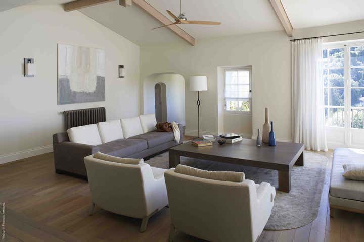 The design began by Barnes immersing himself in the spirit of the place: a Provençal house covered in lime chalk, surrounded by dense Mediterranean vegetation. The aim was not to create a faux Provençal style, but rather an authentic one. Elliott did not want to impose a contemporary style, but rather seeks to reveal a perfect marriage between the ancient and the modern. "The result must reflect the character of the occupants and the vernacular quality of the villa and the site. The result is a subtle intervention, where the quality of the materials sets the tone for a quiet, soothing elegance.