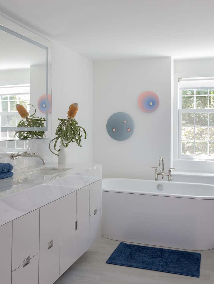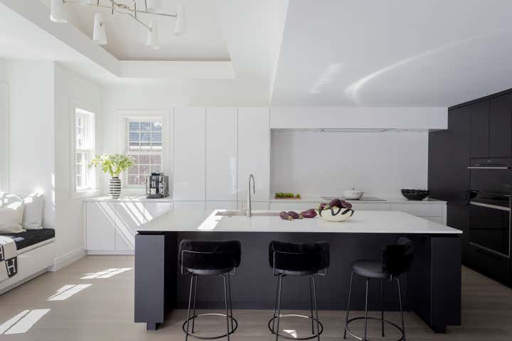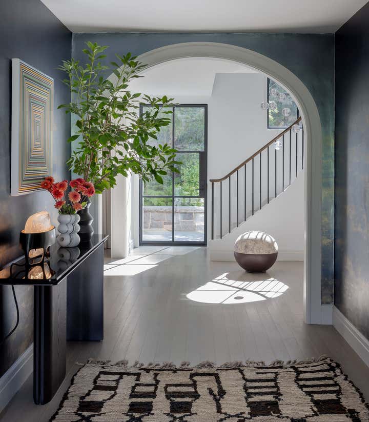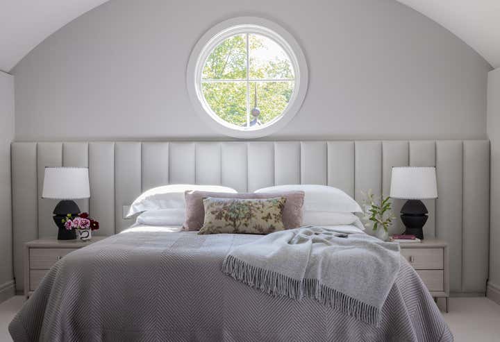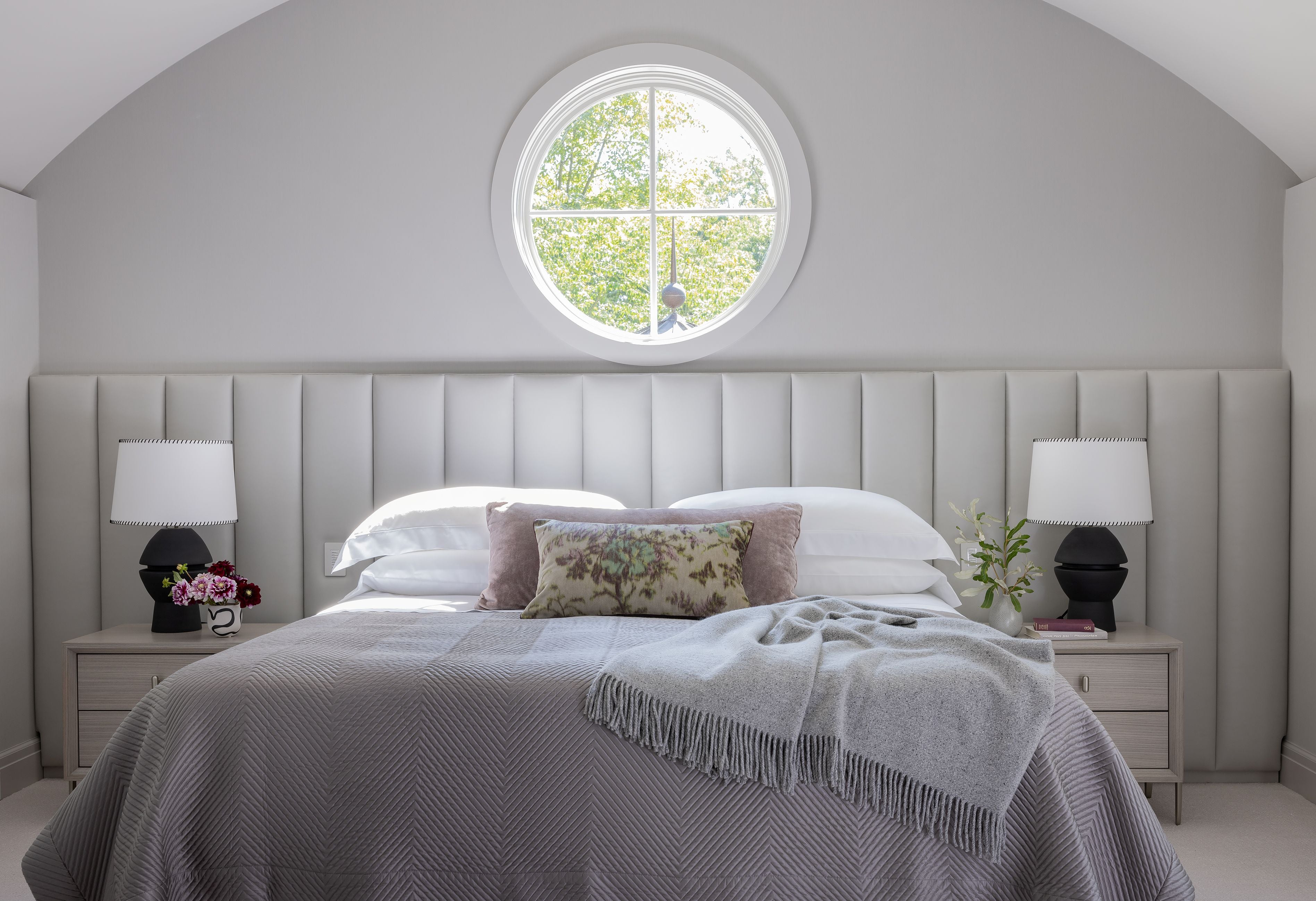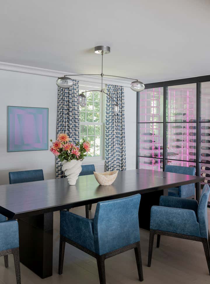 Built in 1933 in the Wellesley Farms neighborhood, this home has evolved with its owners, transitioning from a traditional family residence into a stylish space designed for entertaining and connection. The redesign marks a dramatic shift toward a contemporary aesthetic, defined by clean lines, a neutral palette, and art-forward moments throughout. In the lounge, a sleek white bar and playful disco ball set the tone for lively gatherings, while a Black Diamond stone fireplace and bold artwork provide striking focal points. To enhance light and openness, the conservatory was reimagined as the living room, where uncovered windows now flood the space with natural light and charcoal walls add contrast. The kitchen was simplified with a monochromatic palette and streamlined trim to emphasize height and openness, while bedrooms were refreshed with tailored upholstery and statement lighting. The result is a lighter, brighter home that balances modern style with warmth, inviting celebration and the creation of new memories.