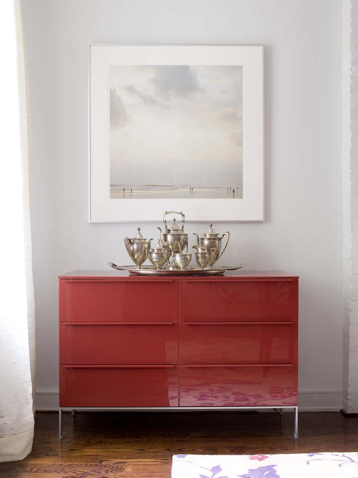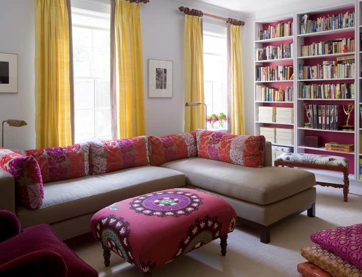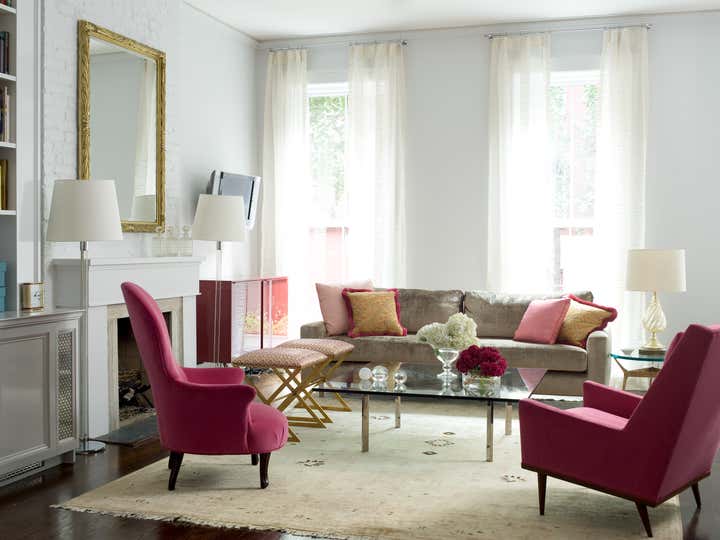 Greenwich Village apartment with bright pops of color and transitional decor.