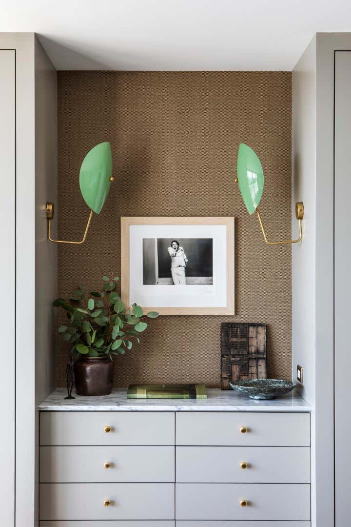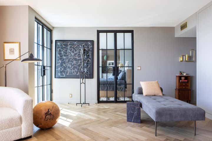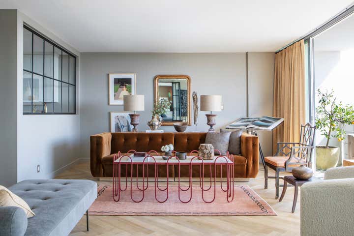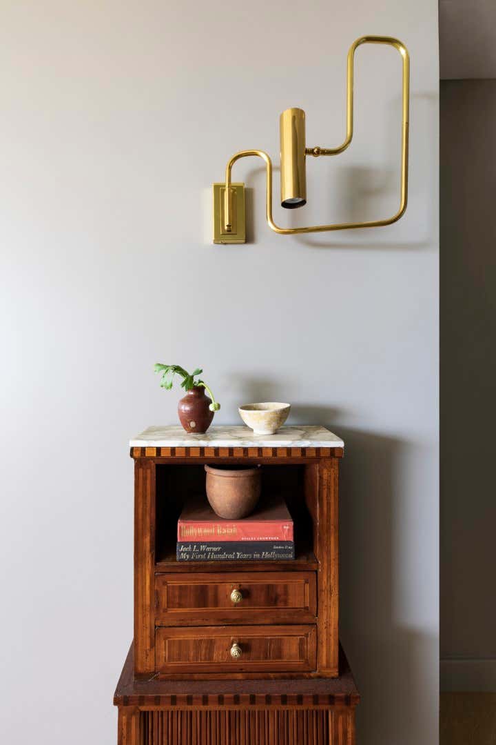 Only in Hollywood would you find a kitchen that resembled the starship Enterprise‘s command center (the apartment used to belong to the set designer for Star Trek!). This was the starting point for Nate and his design team as they reimagined the space, taking it from dated to modern and livable. The clients, international businessmen, aimed to create an elegant pied-a-terre in Los Angeles as a launching point for their global travels. The apartment had to be as hardworking as they are, and provide a soft place to land. One of the biggest challenges in the small 985-square foot space: storage, or lack thereof. Drawing inspiration from a ship’s cabin, Nate created clever and stylish storage solutions for the couple. After working with many vintage and antiques dealers from all over the globe, the end result feels well-traveled, eclectic and unique.