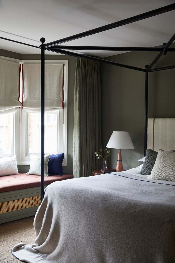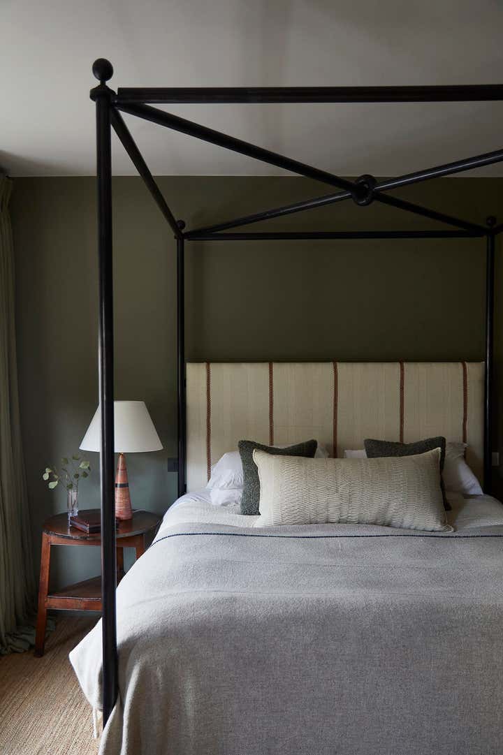 The bespoke four-poster bed was one of the many pieces which was designed by us in the studio and was later made by a talented UK-based blacksmith, adding a touch of drama to the space. All made in the UK using traditional methods with comfort in mind.