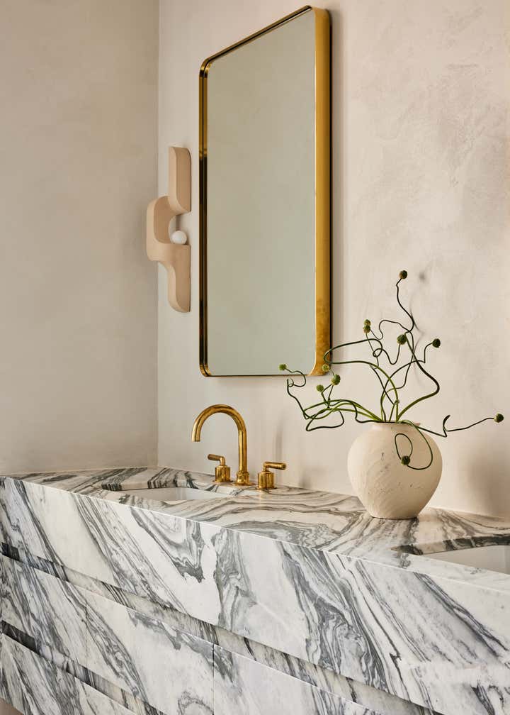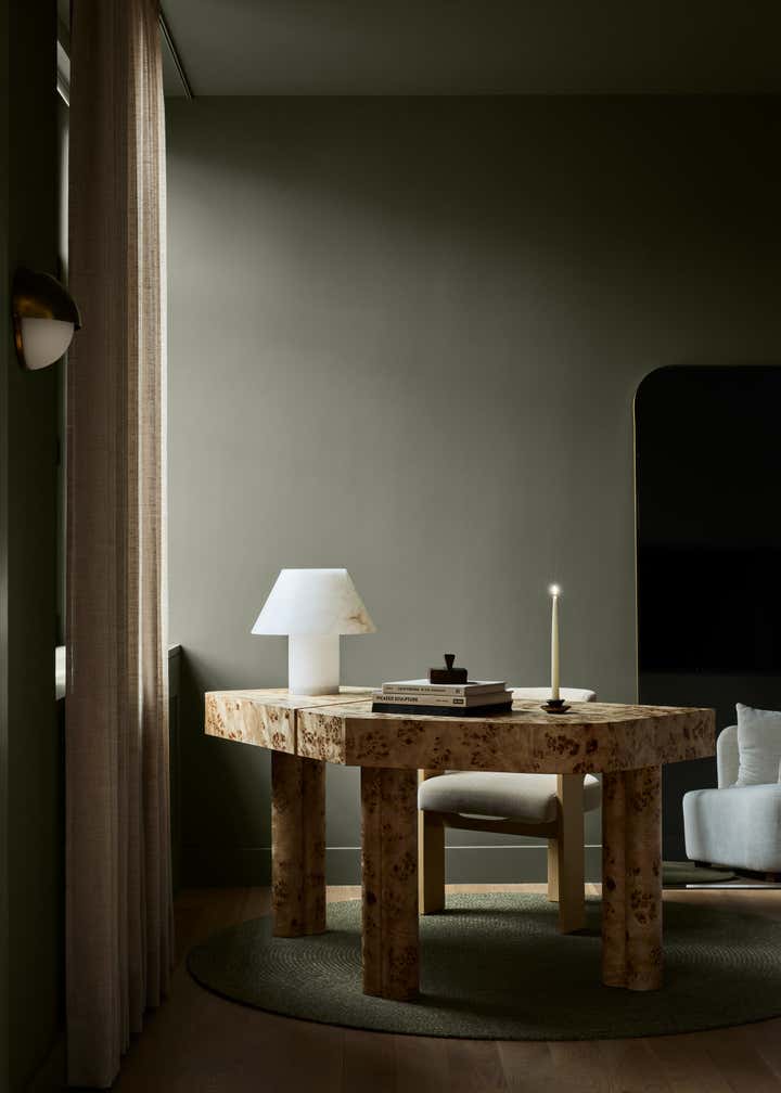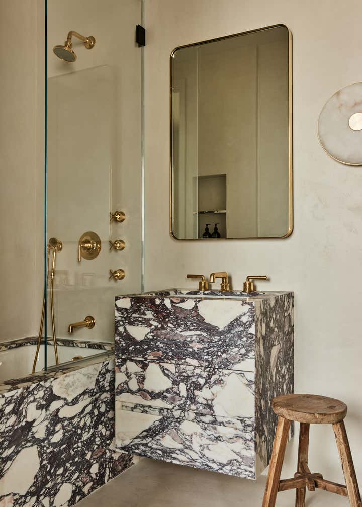 The light, sociable free-flow of the living and entertaining areas are in sharp contrast to the enveloping privacy of the studious work area with its dark, muted tones, whilst the bewitching marble in the principal bathroom makes a bold statement against the pared back lime washed walls and delicate, feminine lighting.
