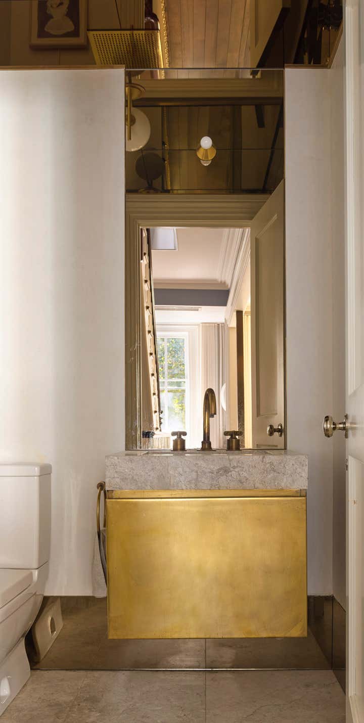This West Village Colonial Revival townhouse, built in 1890, had been gutted by previous owners. Our studio re-established the grand parlor room by adding a modern opening with bronze columns between the parlor and stair hall.