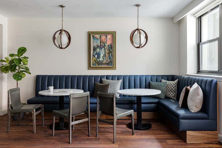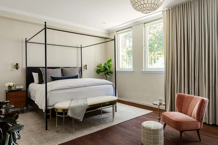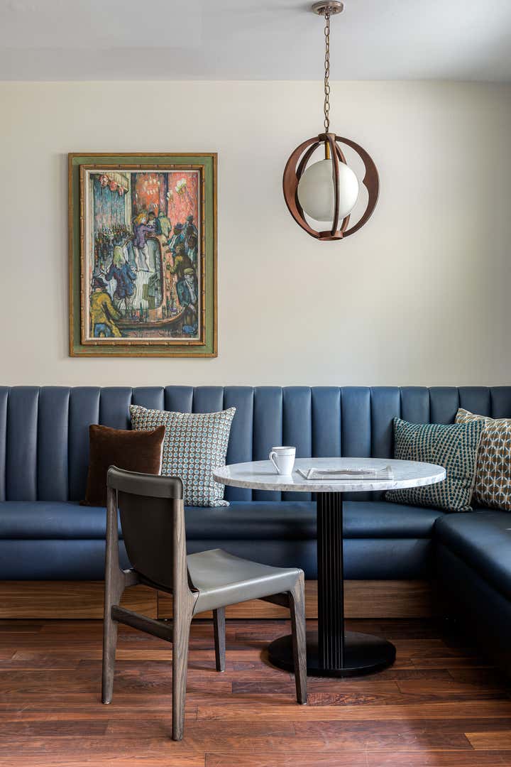 Our West Village townhouse project combined two apartment units into one cohesive home. The design leans into art deco with clean lines and an elegant feel, using pops of color throughout the space.