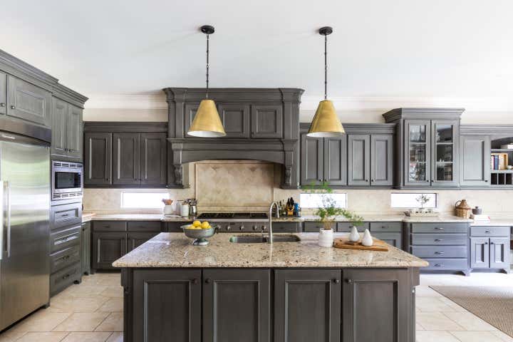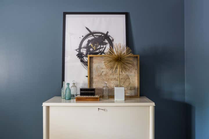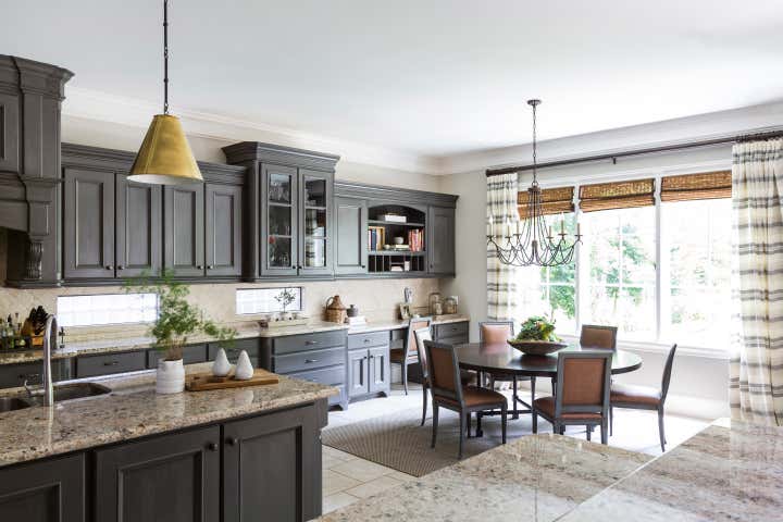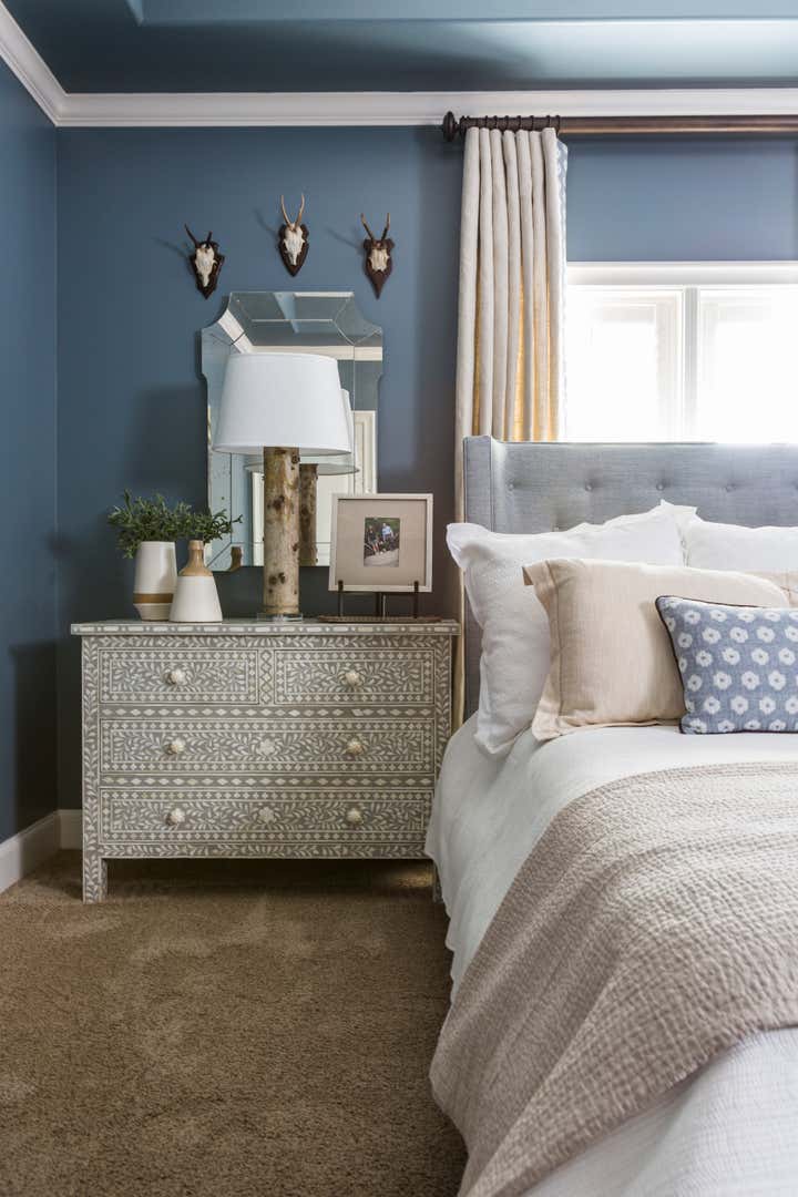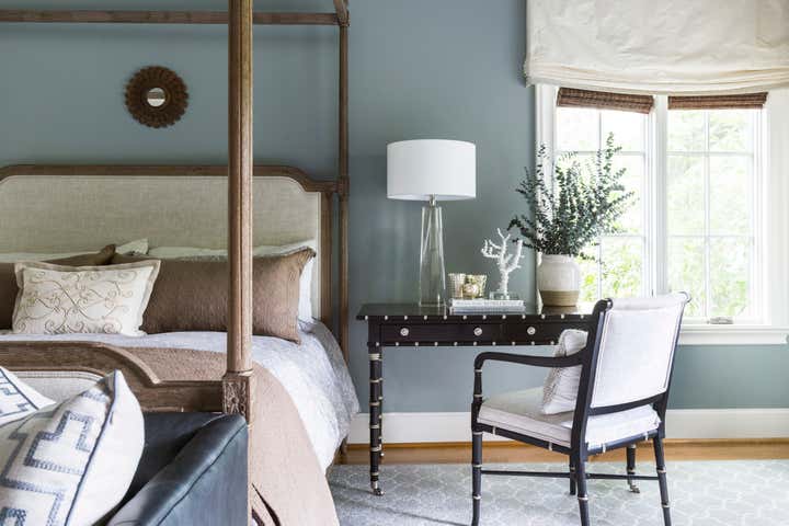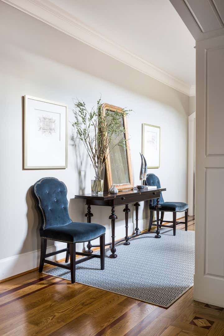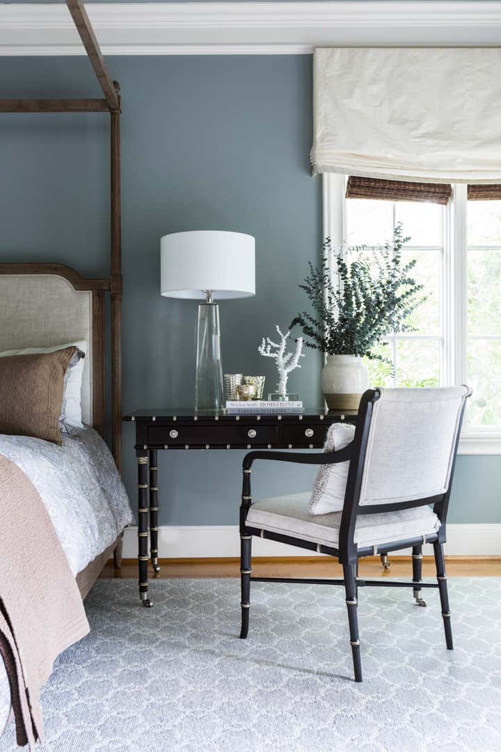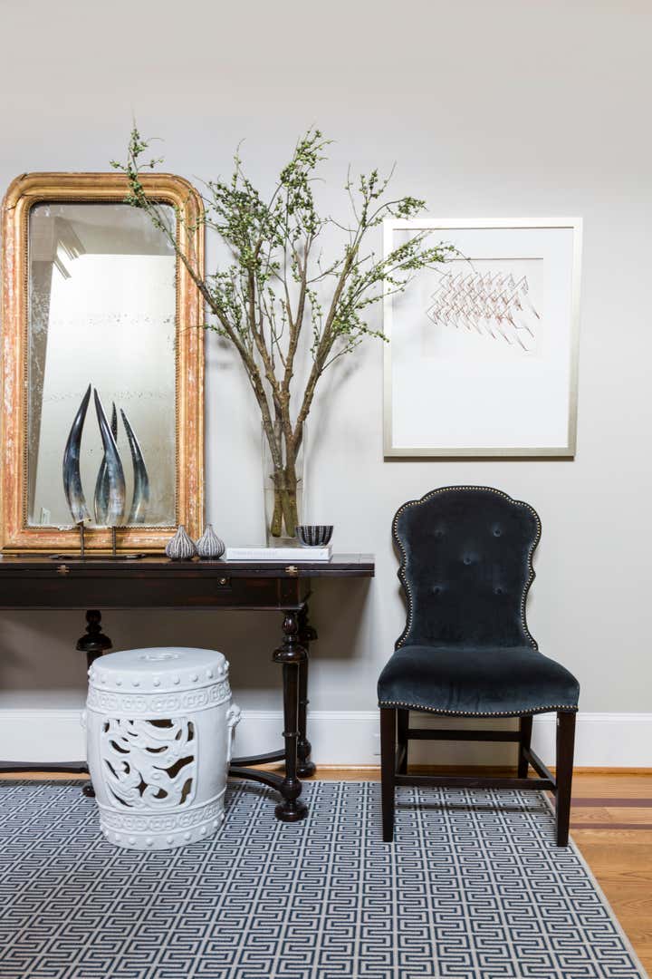 This transitional style home from the 80 s was updated to blend in a mix of a more ecclectic furnishings and modern color palette.