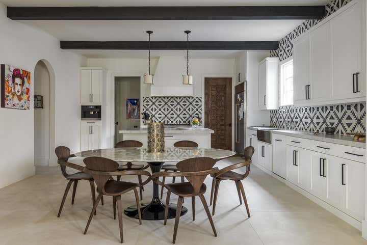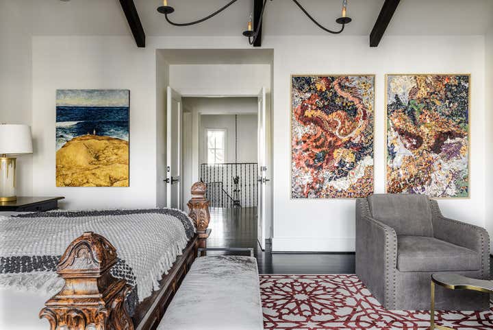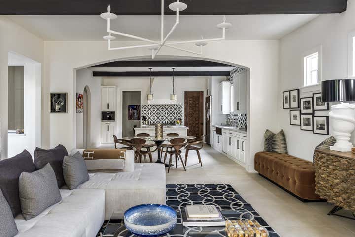 This homeowner has deep roots in Mexico--- his mother resides there and he greatly anticipates his frequent visits. Black wanted his home to beckon cherished, personal memories of sun-drenched voyages spent soaking up everything Mexico offers. While Spanish design can traditionally be considered quite ornate, Lucinda Loya Interiors approached this project with core design principles– preserving and paying tribute to the inspiration, but allowing for the use of modern, sophisticated lines and clean applications. The dazzling results offer an eclectic mix of antiques, custom furniture, curated artwork, and luxurious textures throughout the home – all of which engage and transport the homeowner and guests to the rich, vibrant, and personally-meaningful setting of Mexico.