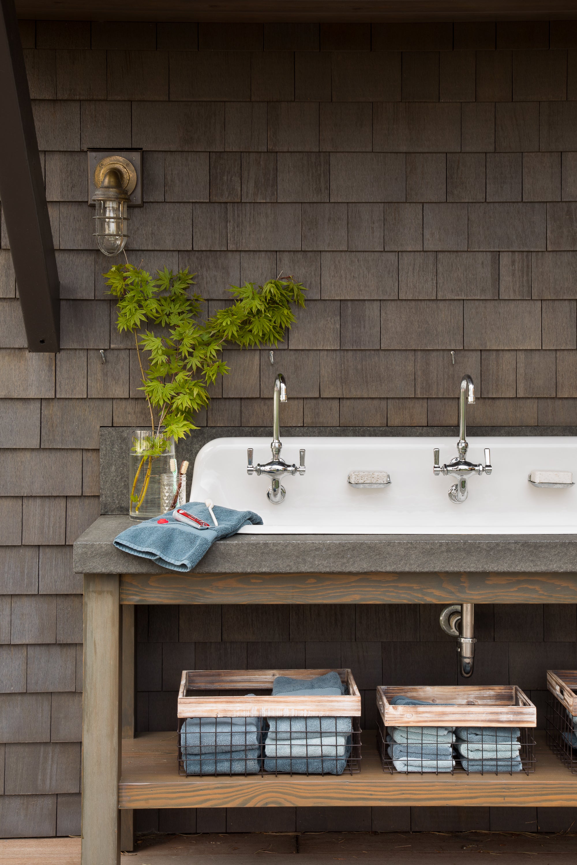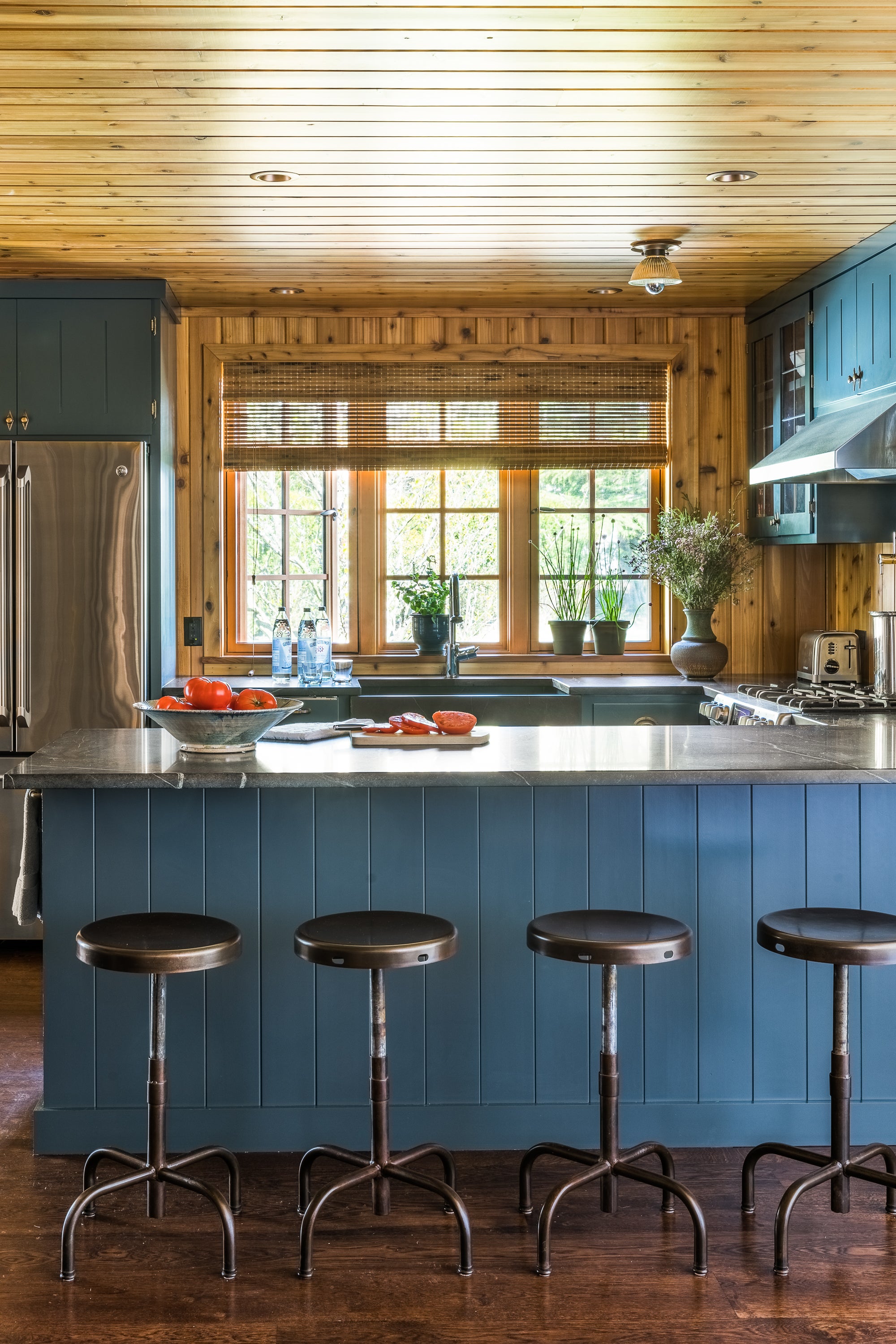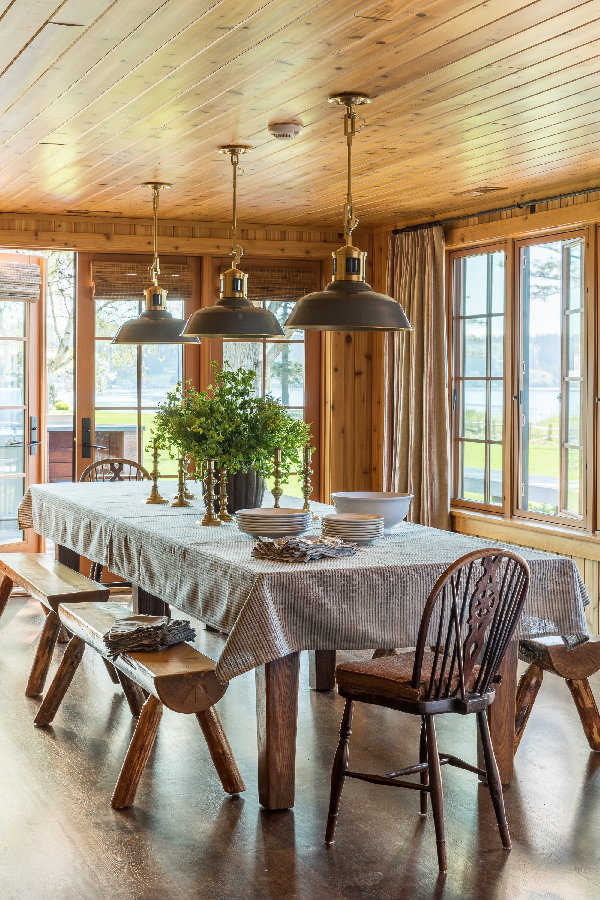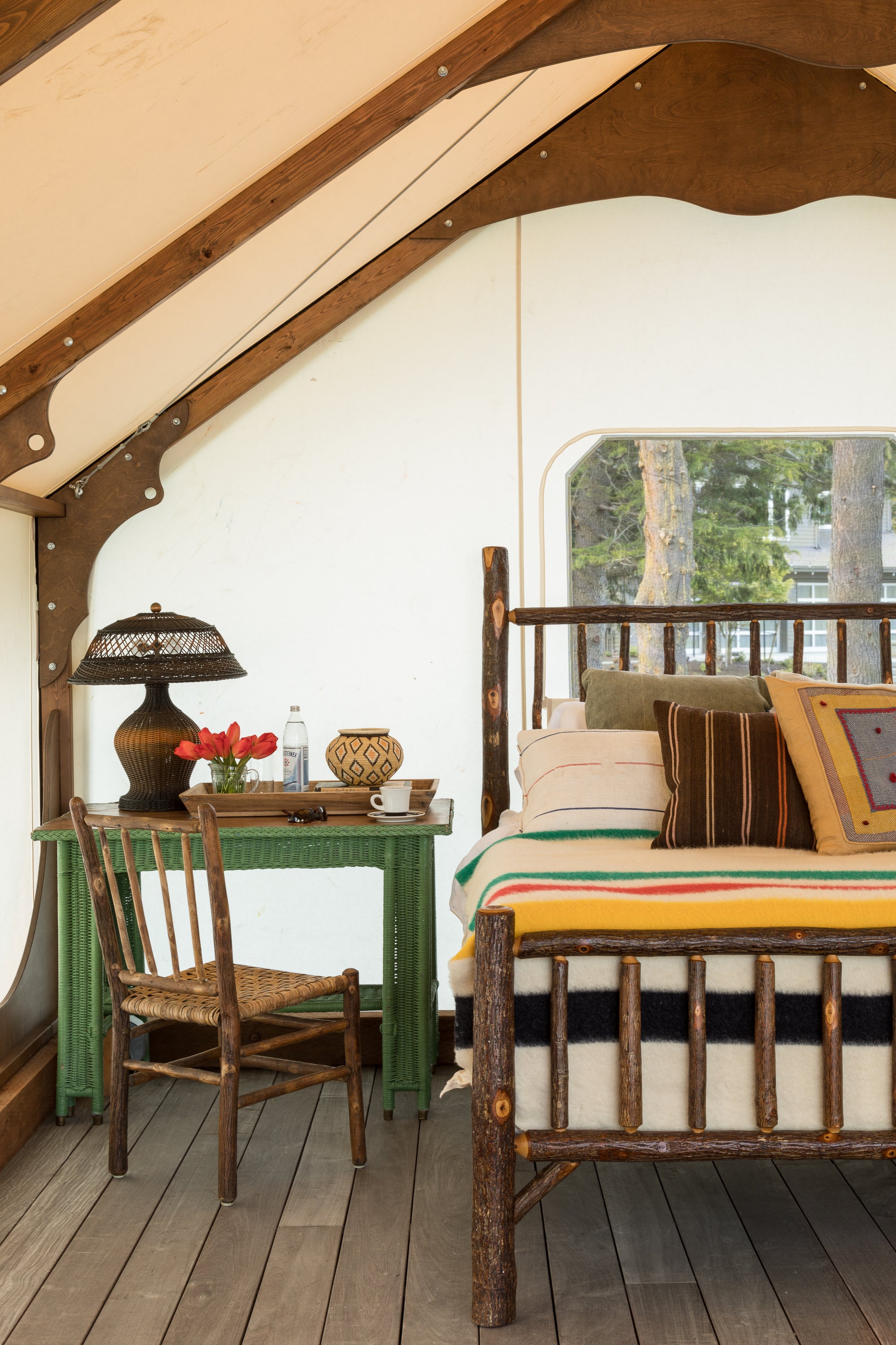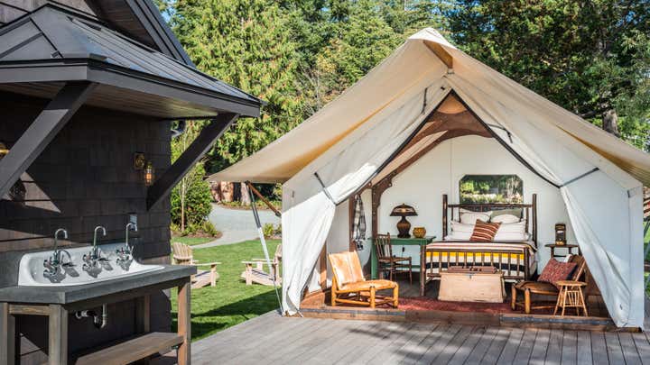 This project shows what happens when you focus on your strengths, defy convention, and take a few risks. The demolition of half the house made room for a camp-like setting of grand indoor spaces for gathering with great outdoor spaces for taking the sun and views, or gathering around the fire. Bedrooms were replaced by a collection of wall tents that lose nothing in luxury and gain everything in the connection to the great outdoors.