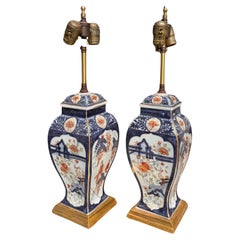 Pair of Antique Japanese Arita Imari Porcelain Vase Lamps